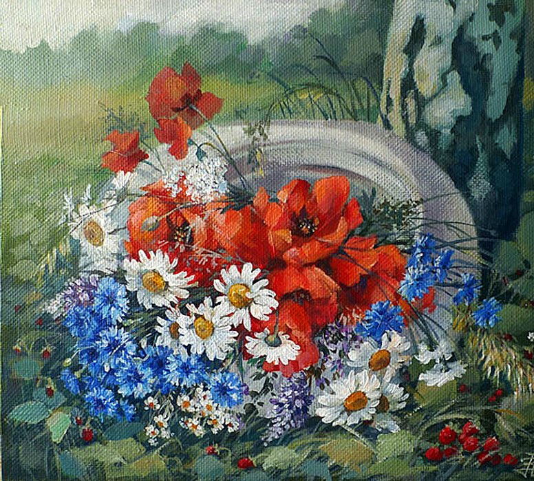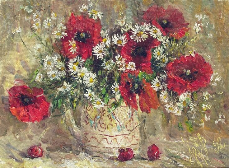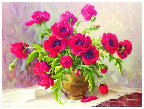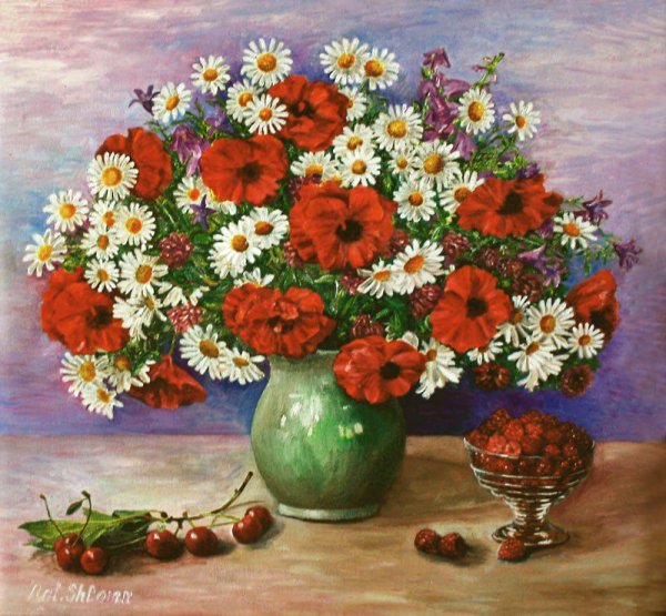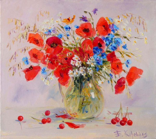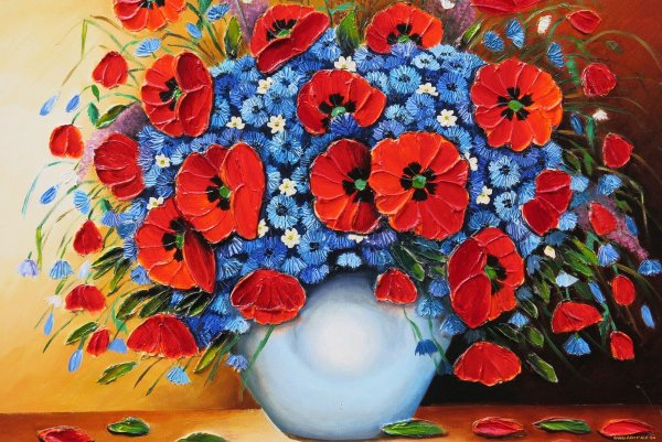 Великолепный натюрморт Машкова с маками и васильками поражает своей красотой и нежностью. Картина переносит нас в загадочный мир природы, где яркие красные маки и нежные синие васильки сияют на фоне зеленой листвы. Художник искусно передает каждую деталь и текстуру цветов, заставляя зрителя ощущать их аромат и дыхание летнего дня. Это произведение искусства является прекрасным выбором для тех, кто ценит красоту природы и желает создать уютную атмосферу в своем интерьере.