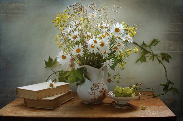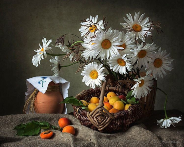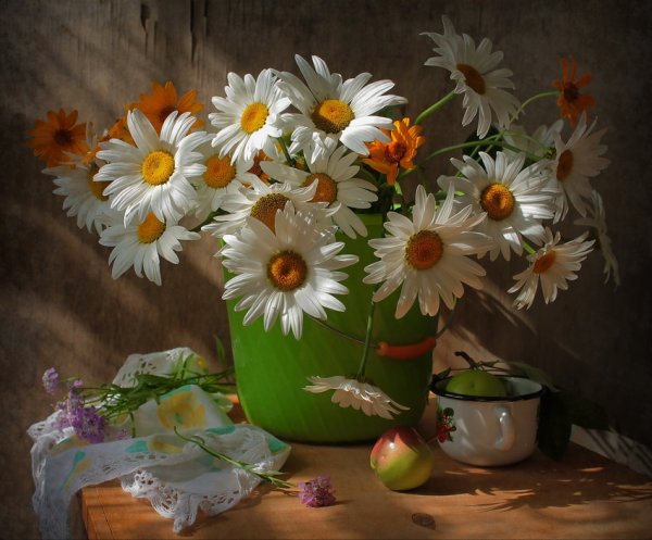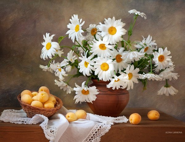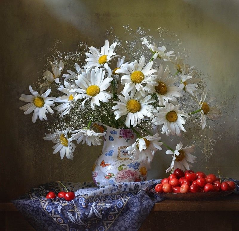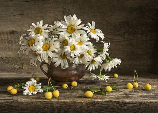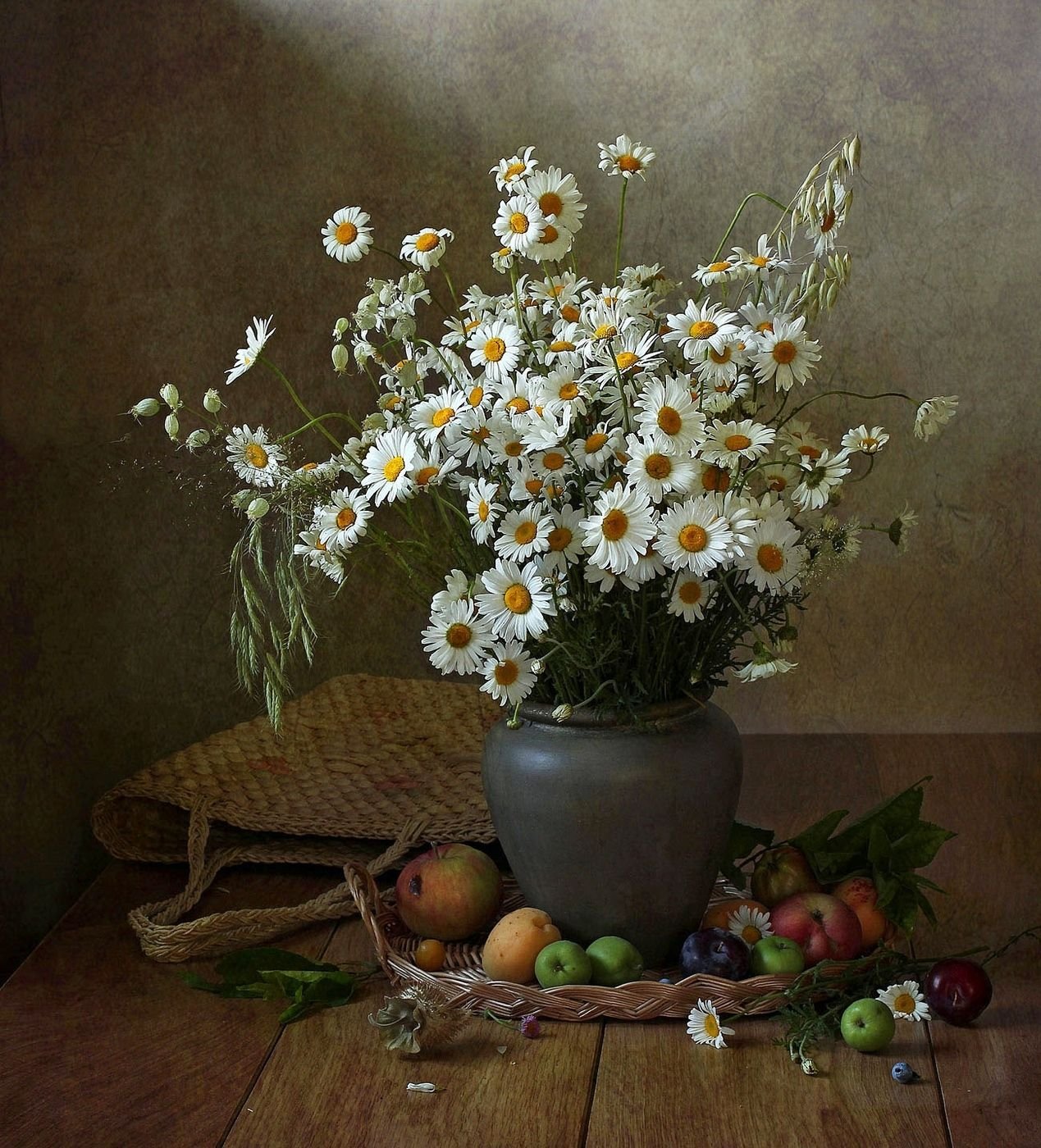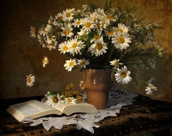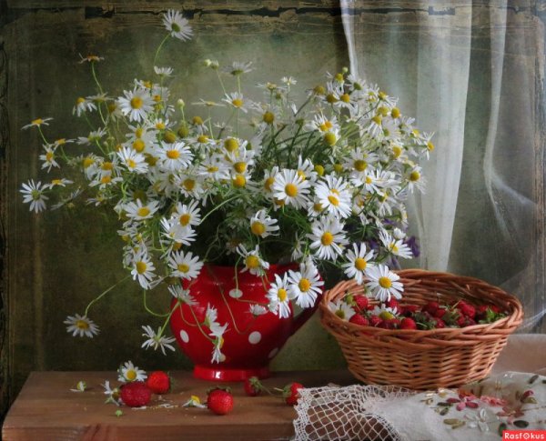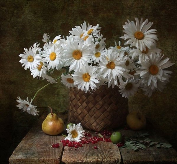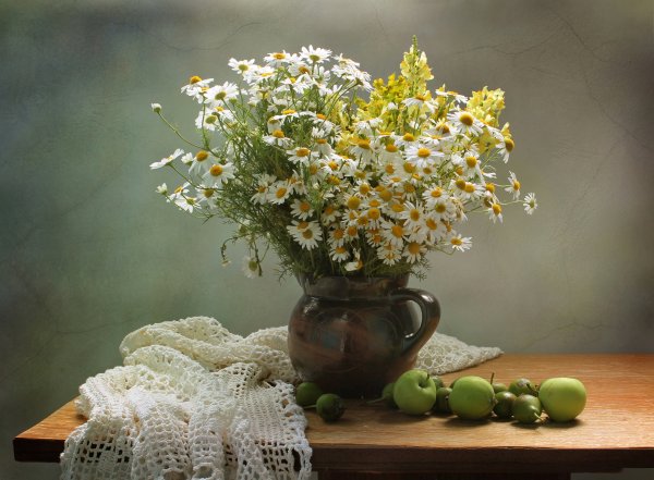 Натюрморт с ромашками - это живописная композиция, в которой изображены свежие и яркие цветы данного вида. Ромашки привлекают внимание своей нежностью, простотой и естественной красотой. Они символизируют чистоту, нежность и радость, что делает этот натюрморт прекрасным элементом декора для различных интерьеров. Натюрморт с ромашками может быть выполнен в различных стилях и техниках живописи, от классического до современного, позволяя каждому выбрать подходящий вариант в соответствии с индивидуальными предпочтениями. Такой натюрморт является универсальным и эстетически приятным объектом искусства, который способен создать атмосферу уюта и гармонии в любом помещении.
