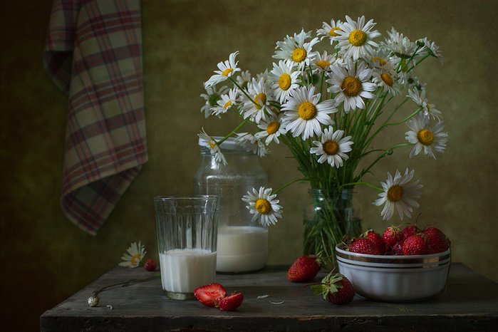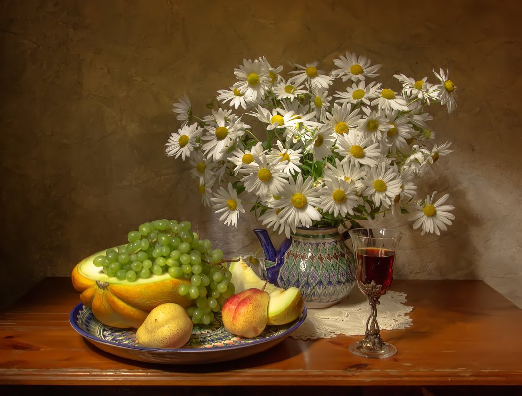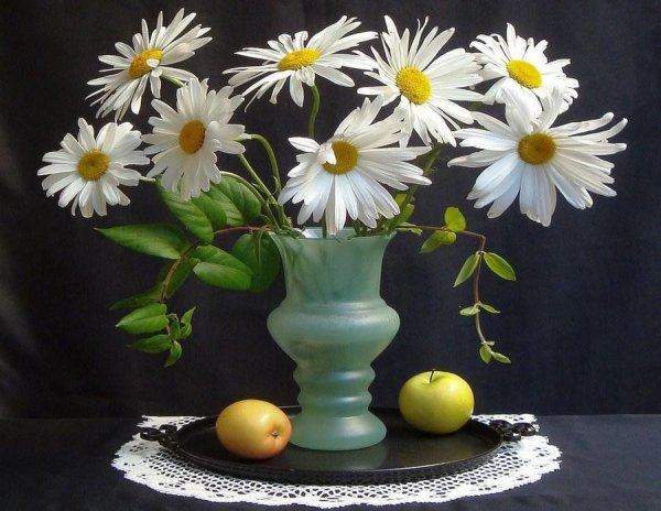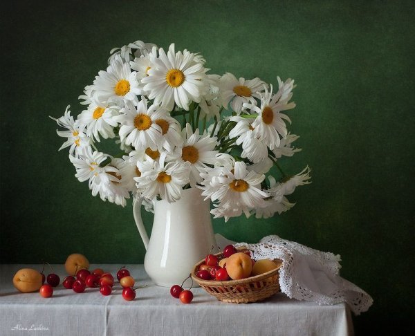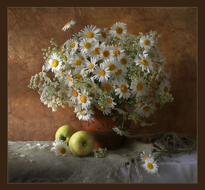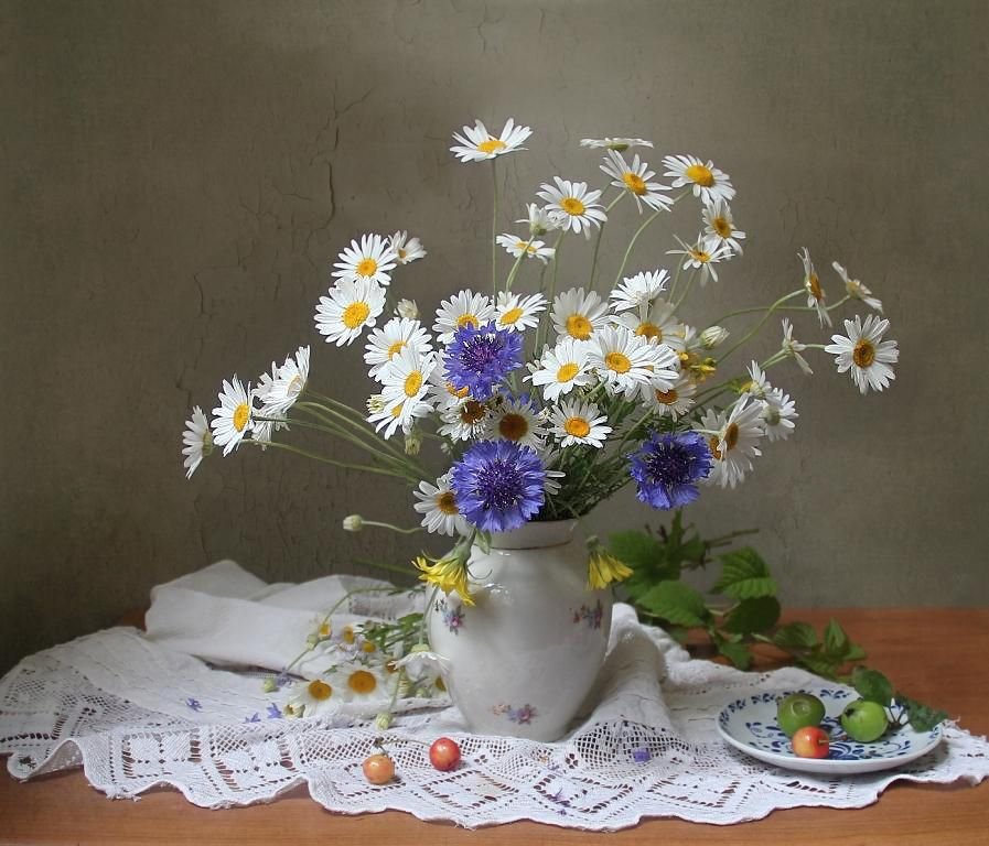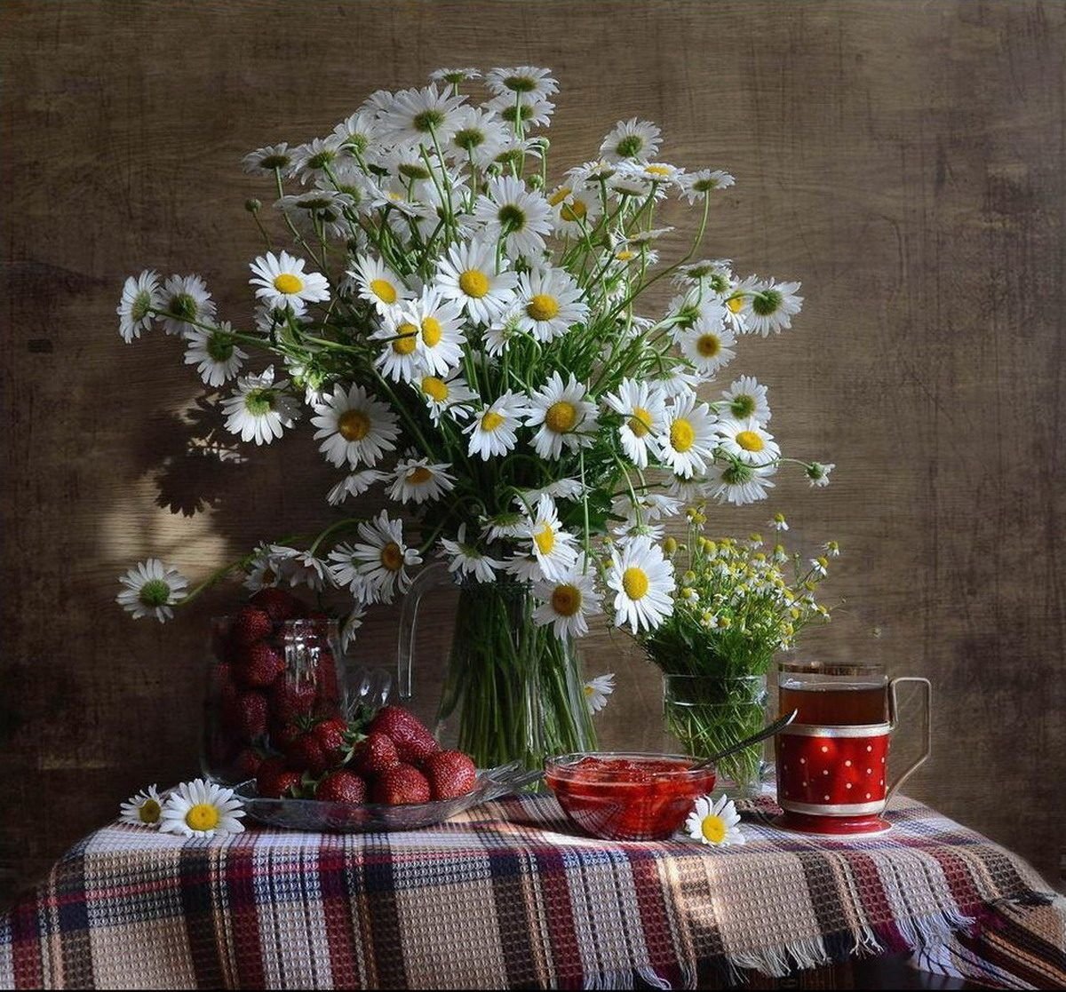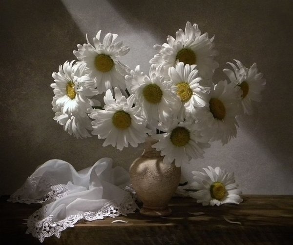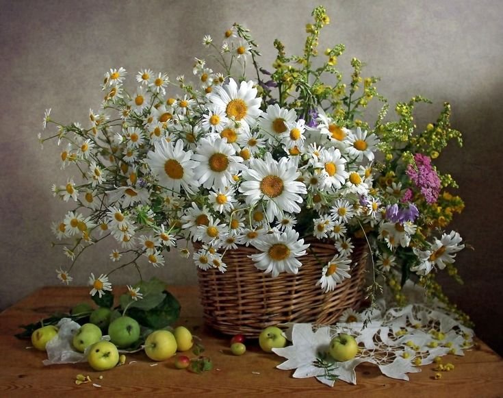 Натюрморт с ромашками - это живописная композиция, в которой изображены свежие и яркие цветы данного вида. Ромашки привлекают внимание своей нежностью, простотой и естественной красотой. Они символизируют чистоту, нежность и радость, что делает этот натюрморт прекрасным элементом декора для различных интерьеров. Натюрморт с ромашками может быть выполнен в различных стилях и техниках живописи, от классического до современного, позволяя каждому выбрать подходящий вариант в соответствии с индивидуальными предпочтениями. Такой натюрморт является универсальным и эстетически приятным объектом искусства, который способен создать атмосферу уюта и гармонии в любом помещении.