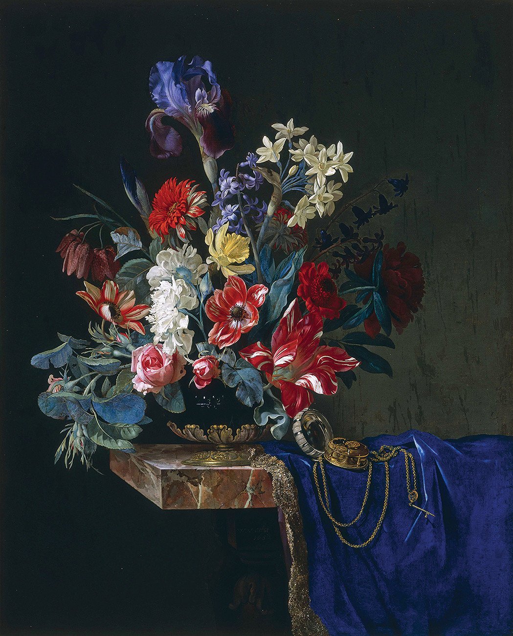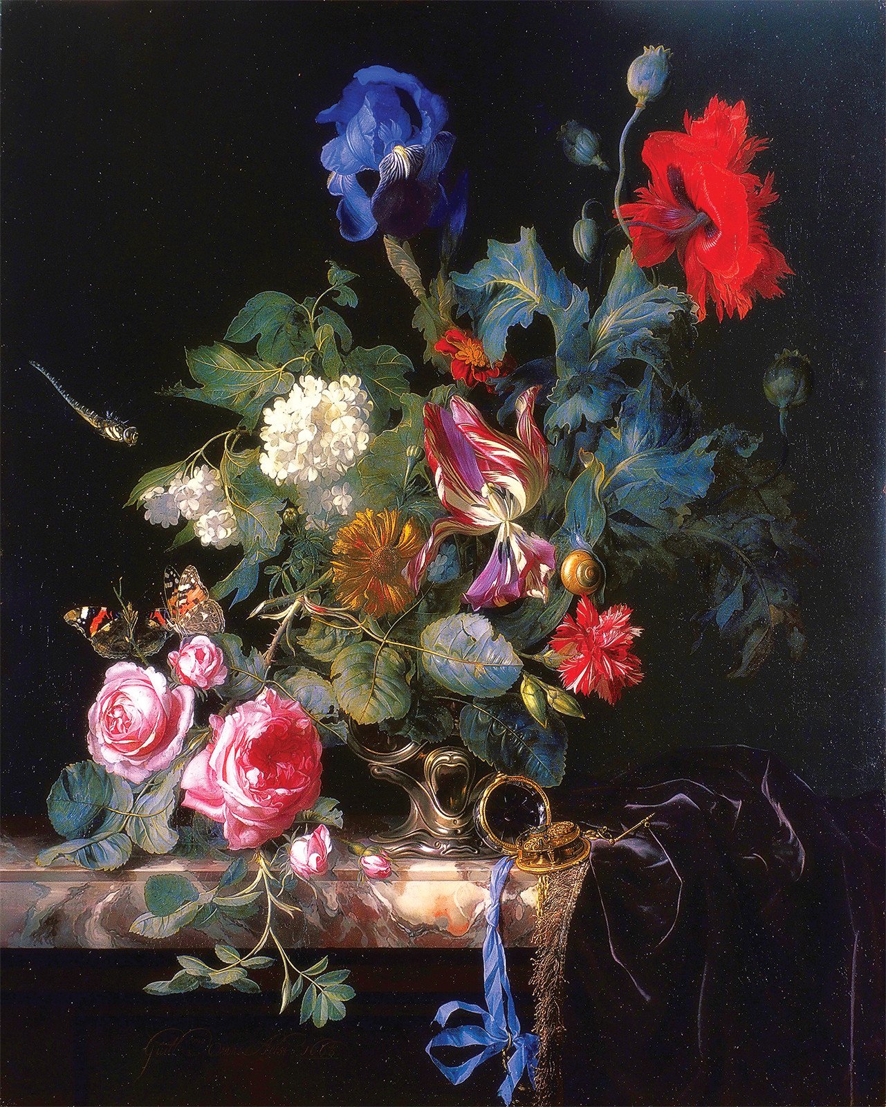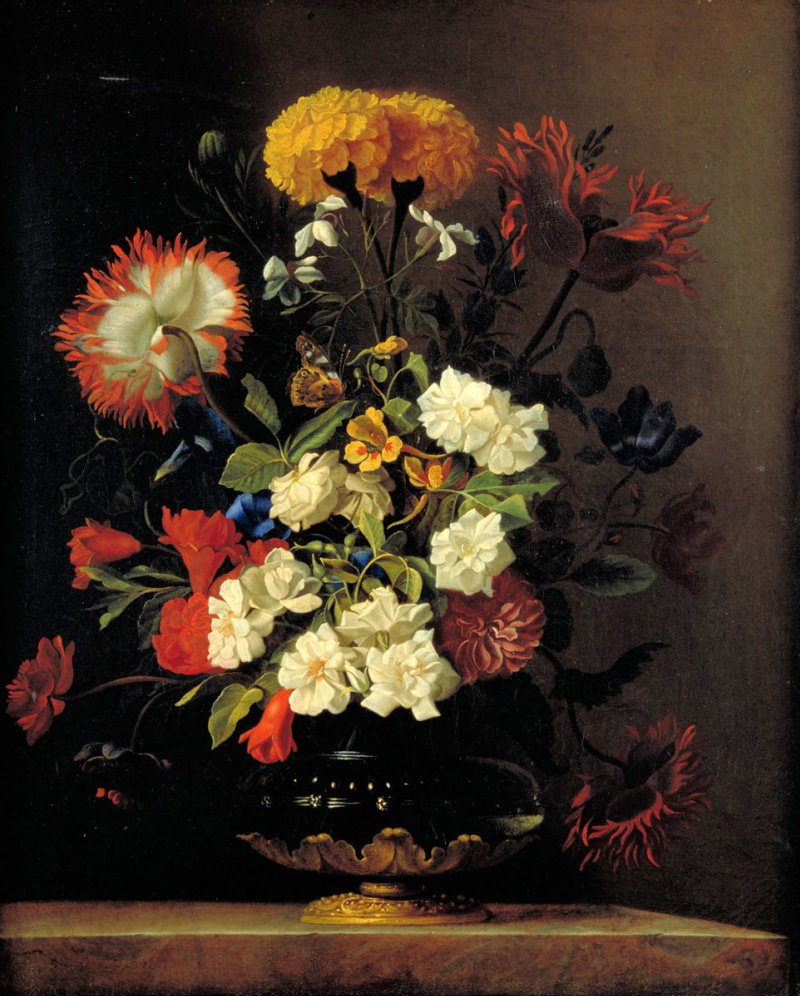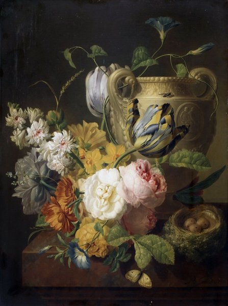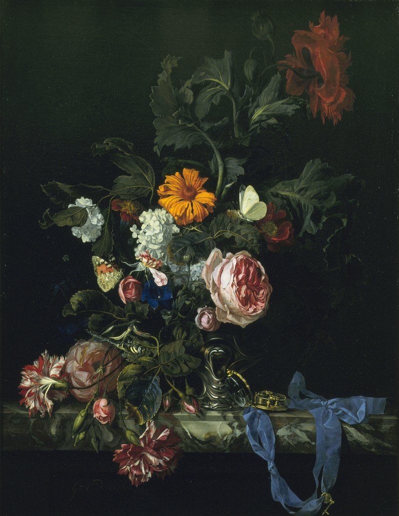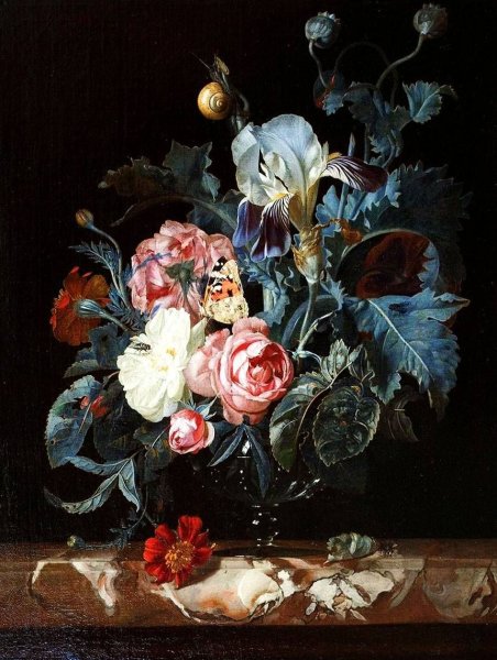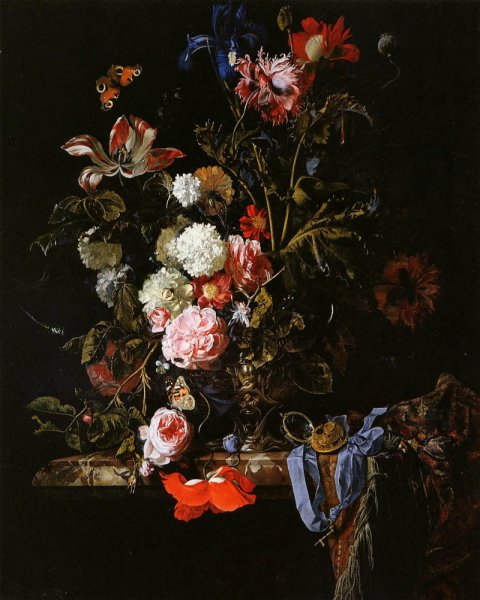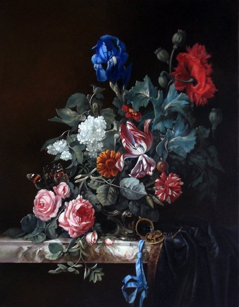 Виллем ван Альст - известный голландский художник, чьи работы прославлены своей точностью и реалистичностью. Одной из его наиболее узнаваемых картин является "Цветочный натюрморт с часами". На этом полотне художник виртуозно сочетает два разных элемента - живые цветы и механические часы. Цветы, изображенные с такой детализацией, словно оживают на холсте, передавая свою красоту и нежность. В то же время, часы символизируют бег времени и привносят элемент ностальгии и меланхолии. Эта картина идеально подходит для любителей классического живописного искусства и станет прекрасным украшением интерьера, добавив нотку изысканности и гармонии.