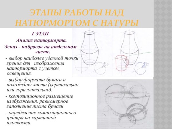 Строение натюрморта - это основные элементы и композиционные принципы, которые задают общую структуру и организацию изображения. В натюрморте каждый объект имеет свое место и выполняет определенную функцию в создании гармоничного и эстетически привлекательного образа. Онтрасление и балансирование элементов, выбор цветовой гаммы и игра светотени создают ощущение объемности и глубины. Одной из ключевых составляющих строения натюрморта является также выбор предметов и их взаимодействие друг с другом на поверхности. Каждая деталь вносит свой вклад в общую сцену, придавая ей индивидуальность и характер. Важно учесть все эти факторы при создании натюрморта, чтобы достичь гармонии и красоты визуального изображения.