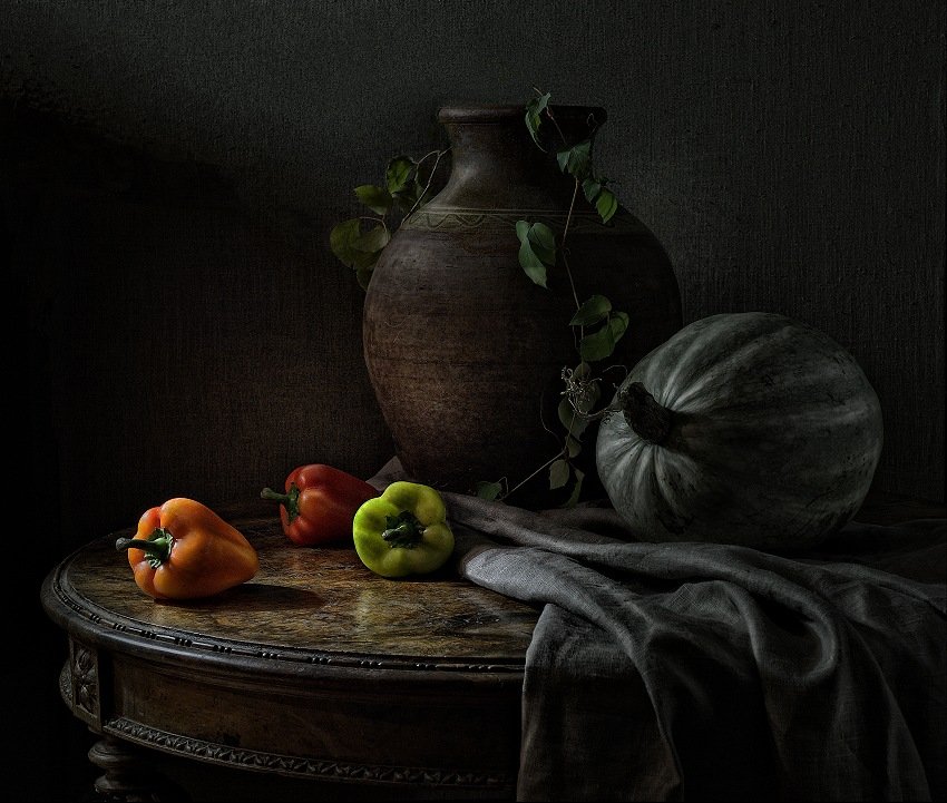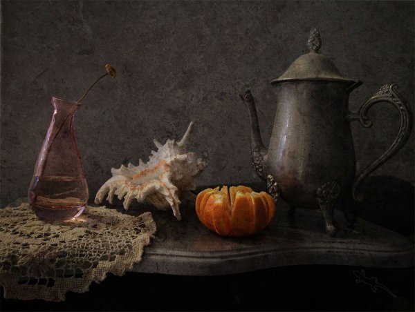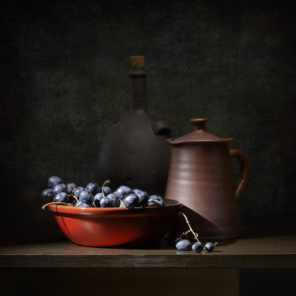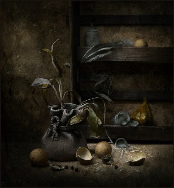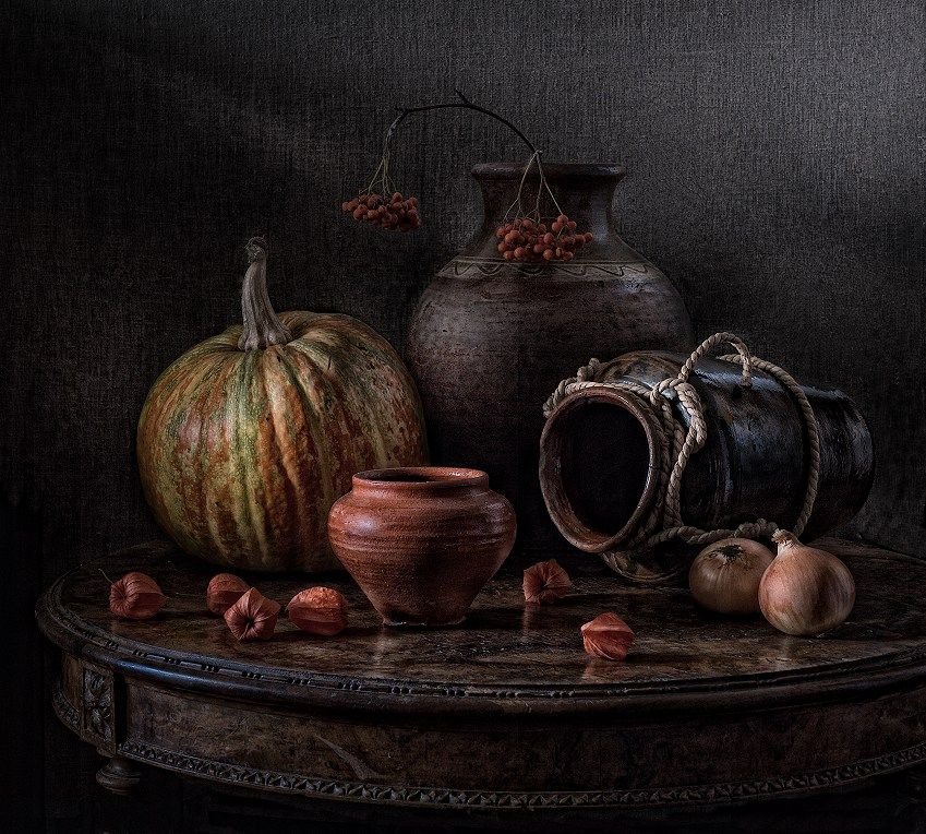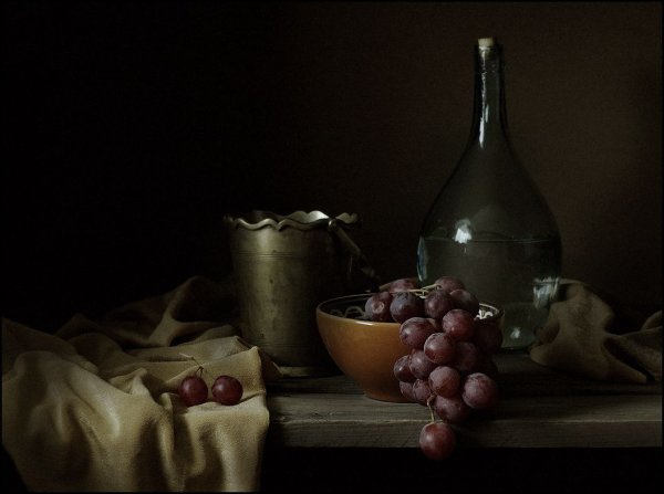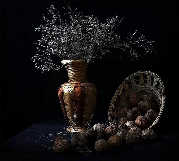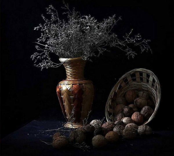 Темный натюрморт - это произведение искусства, которое воссоздает атмосферу таинственности и загадочности. В таком натюрморте используются различные предметы и объекты, создающие мрачную и погружающую в себя обстановку. Цветовая палитра в основном состоит из глубоких и темных оттенков, таких как черный, бордовый, темно-синий, что добавляет картины драматичности и таинственности. Такой вид искусства позволяет зрителю окунуться в мир тайн и секретов, вызывая у него чувство интриги и внутреннего волнения. Темный натюрморт является необычным и оригинальным способом выразить свои эмоции и мысли через художественное творчество.