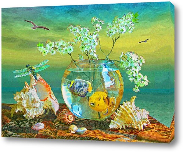 Натюрморт с аквариумом - это уникальное произведение искусства, которое сочетает в себе красоту живописи и эстетику живого мира под водой. Этот натюрморт захватывает взгляд своей яркостью и разнообразием цветовых оттенков, представляя великолепную россыпь тропических рыбок, зеленых водорослей и камней, создавая таким образом уютный и гармоничный амбиент для расслабления и наслаждения. Аквариум становится центральным элементом этого натюрморта, придающим ему особый шарм и оживляющим комнату своей присутствием. Натюрморт с аквариумом - это не только прекрасное украшение для интерьера, но и возможность погрузиться в таинственный и удивительный мир подводной жизни, привнося радость и умиротворение в нашу повседневную жизнь.