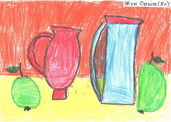 Нарисованный детьми натюрморт - это уникальное произведение искусства, которое воплощает в себе не только творческий потенциал и воображение самых юных художников, но и прекрасную способность передать красоту окружающего мира через свежий взгляд. Каждая кисточка и каждый цвет отражают чистоту и бесконечную радость ребенка, который создал эту картину. В таком натюрморте можно увидеть яркие цвета, живые образы фруктов, цветов или предметов, их объемность и игру теней. Это произведение искусства не только украшает интерьер, но и стимулирует развитие детского творчества, внимательности и наблюдательности. Оно напоминает нам о ценности детской фантазии и способности видеть прекрасное в самых обычных вещах.