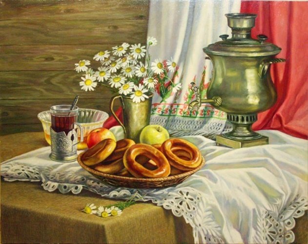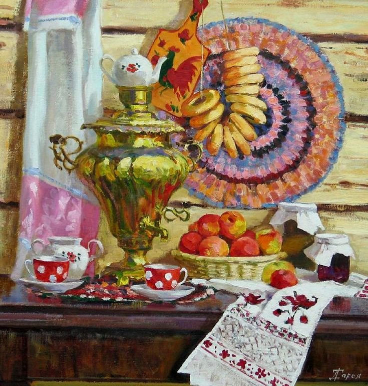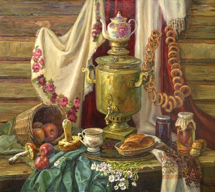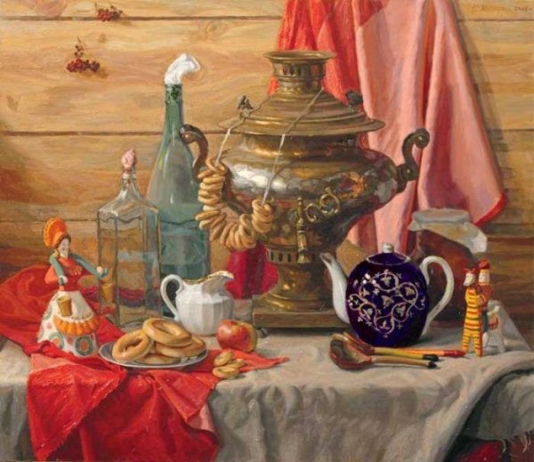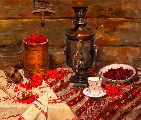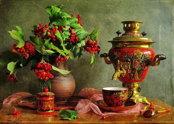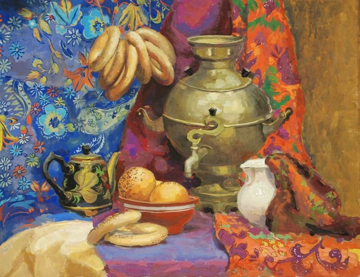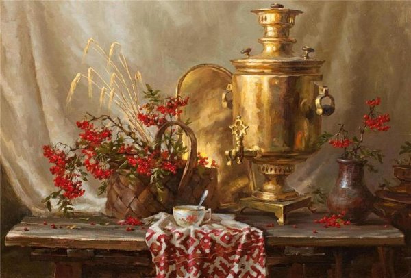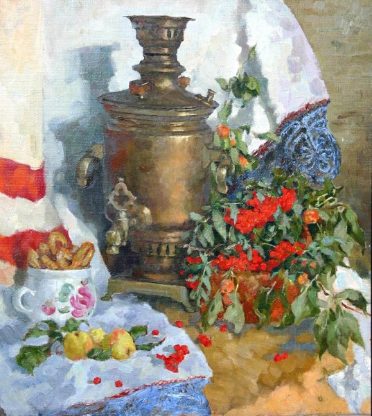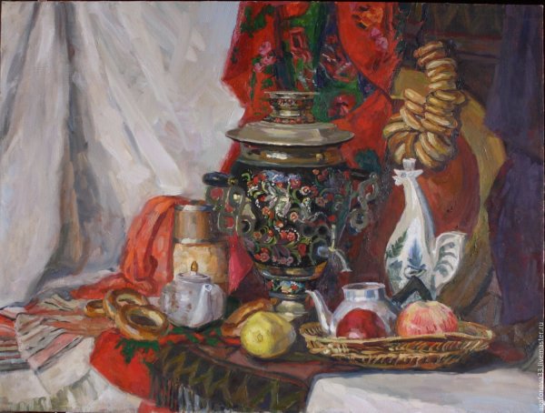 Натюрморт в русском стиле – это живописное изображение предметов, наполненных национальной символикой и характеристиками. В таких работах можно увидеть традиционные русские предметы, как, например, самовары, ложки, лапоти и другие элементы культуры. Часто натюрморты в русском стиле демонстрируют богатство и разнообразие природы, отражая особенности сельской жизни и национальной идентичности. Яркие и насыщенные цвета, простые и гармоничные композиции делают русский натюрморт узнаваемым и уникальным. Он позволяет зрителю окунуться в атмосферу русской культуры и передает ее особый колорит и дух.