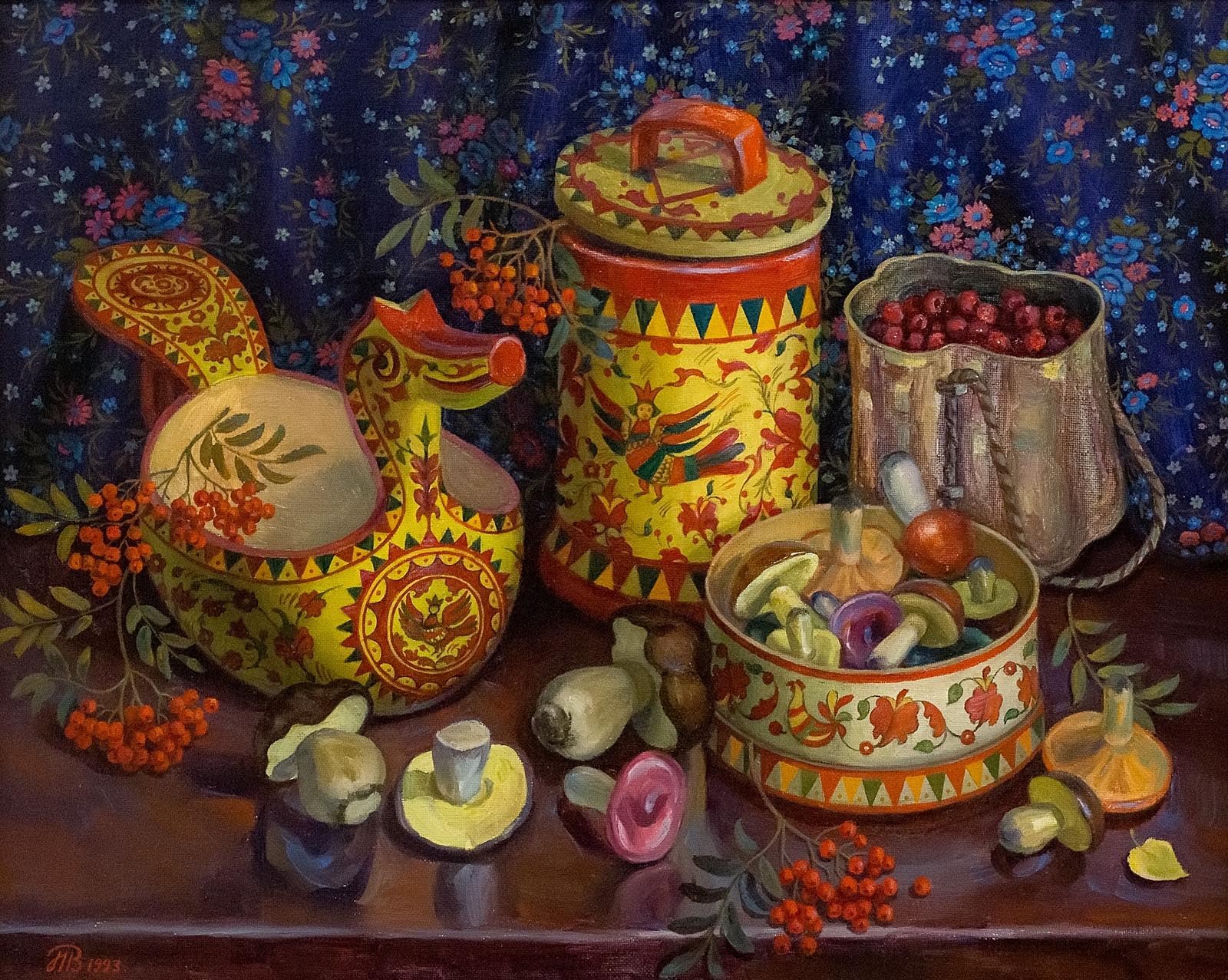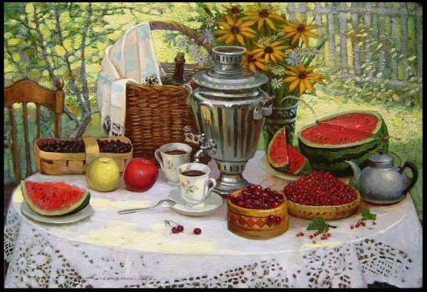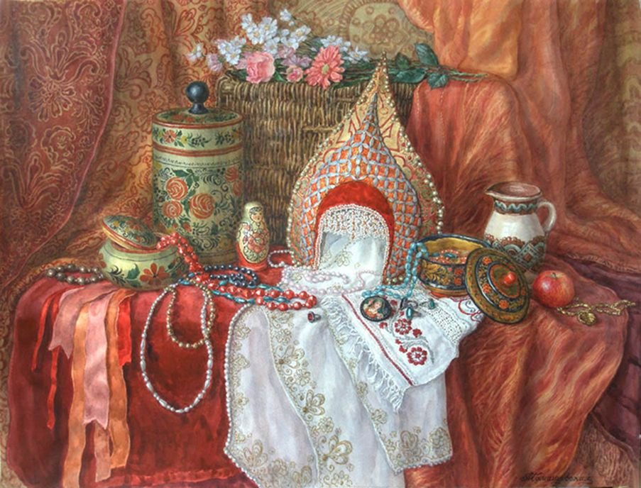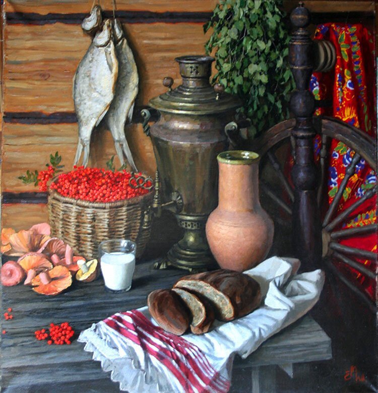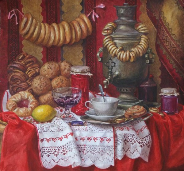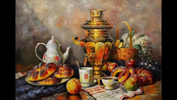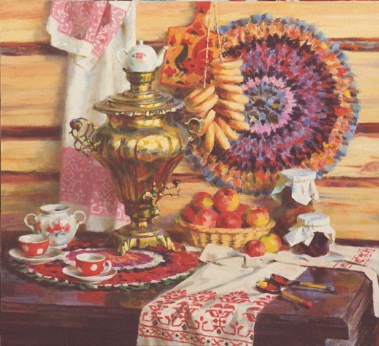 Натюрморт в русском стиле – это живописное изображение предметов, наполненных национальной символикой и характеристиками. В таких работах можно увидеть традиционные русские предметы, как, например, самовары, ложки, лапоти и другие элементы культуры. Часто натюрморты в русском стиле демонстрируют богатство и разнообразие природы, отражая особенности сельской жизни и национальной идентичности. Яркие и насыщенные цвета, простые и гармоничные композиции делают русский натюрморт узнаваемым и уникальным. Он позволяет зрителю окунуться в атмосферу русской культуры и передает ее особый колорит и дух.