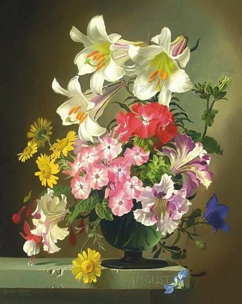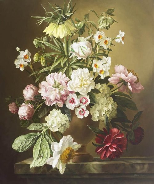 Великолепные цветочные натюрморты Джеральда Купера открывают перед нами удивительный мир красок и форм. В каждой его работе можно увидеть тонкий баланс между реализмом и фантазией, что придает картинам особую глубину и выразительность. Цветы на его полотнах просто оживают, словно взяты из самой природы, и заставляют нас восхищаться их красотой и изумляться деталям. Джеральд Купер - настоящий мастер своего дела, чья работа погружает зрителя в мир эстетического восхищения и впечатляющих образов.