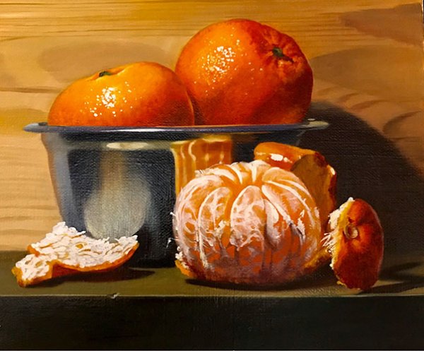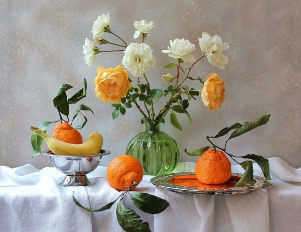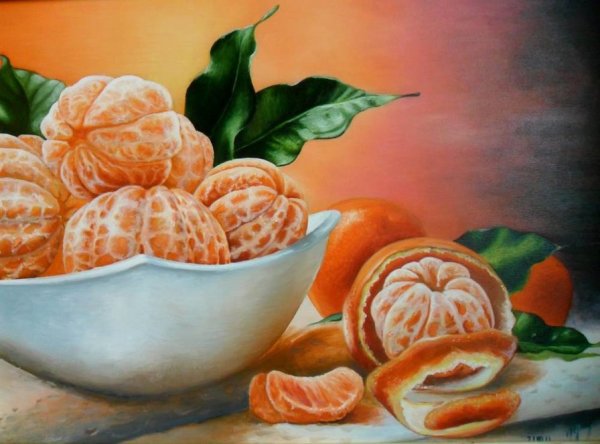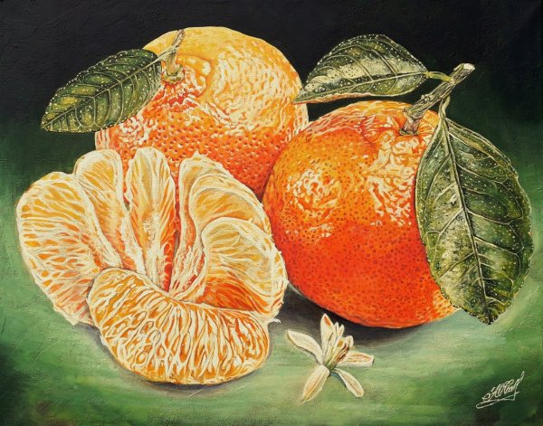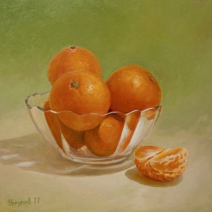 Натюрморт с мандаринками - это уникальное произведение искусства, которое захватывает взгляд и создает атмосферу тепла и уюта. В этом натюрморте каждая мандаринка ярко переливается сочными оттенками оранжевого цвета, словно приглашая насладиться свежестью и сладостью этих фруктов. Композиция мандаринок размещена на старинном серебряном подносе, что добавляет нотку роскоши и элегантности. Структура плодов и их игра света и тени привлекает внимание и создает ощущение трехмерности. Натюрморт с мандаринками - это идеальное украшение для кухни, столовой или гостиной, которое добавит шарма и живости в любой интерьер.