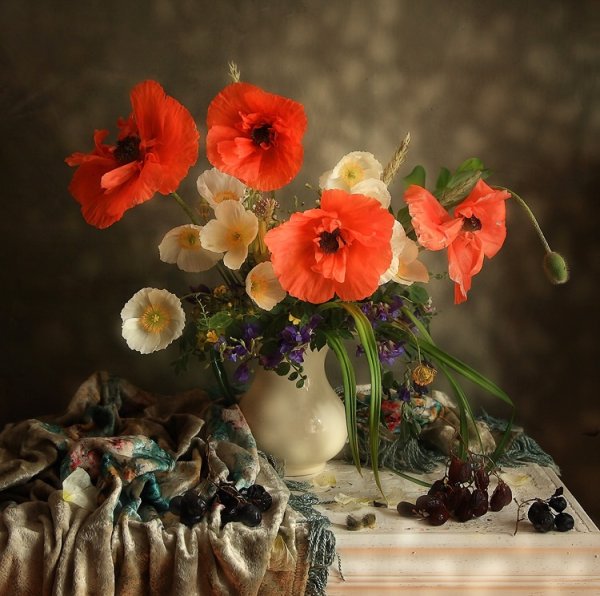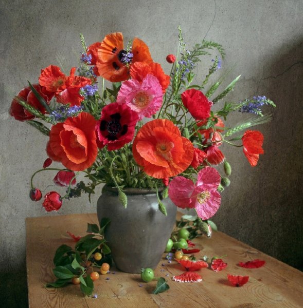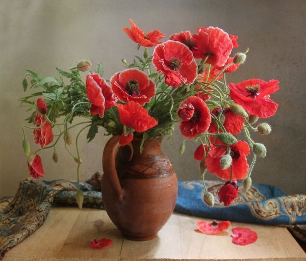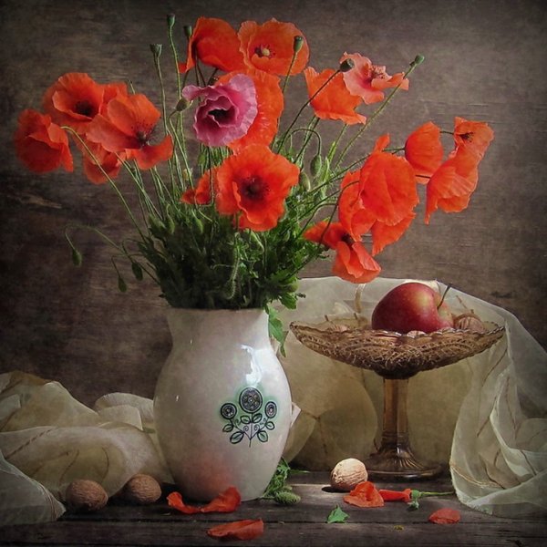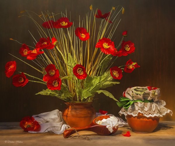 Натюрморт с маками - это потрясающая живописная композиция, которая притягивает внимание своей красотой и элегантностью. Картина запечатлевает яркие красные маки, которые являются символом жизни, страсти и эмоций. Они гармонично сочетаются с нежной зеленью листьев и создают уникальное ощущение природной красоты. Взгляд на этот натюрморт позволяет окунуться в атмосферу тишины и спокойствия, насладиться моментом и передать его эстетическое воздействие. Натюрморт с маками - идеальное дополнение для интерьера любого помещения, наполнив его яркостью и жизненной энергией.
