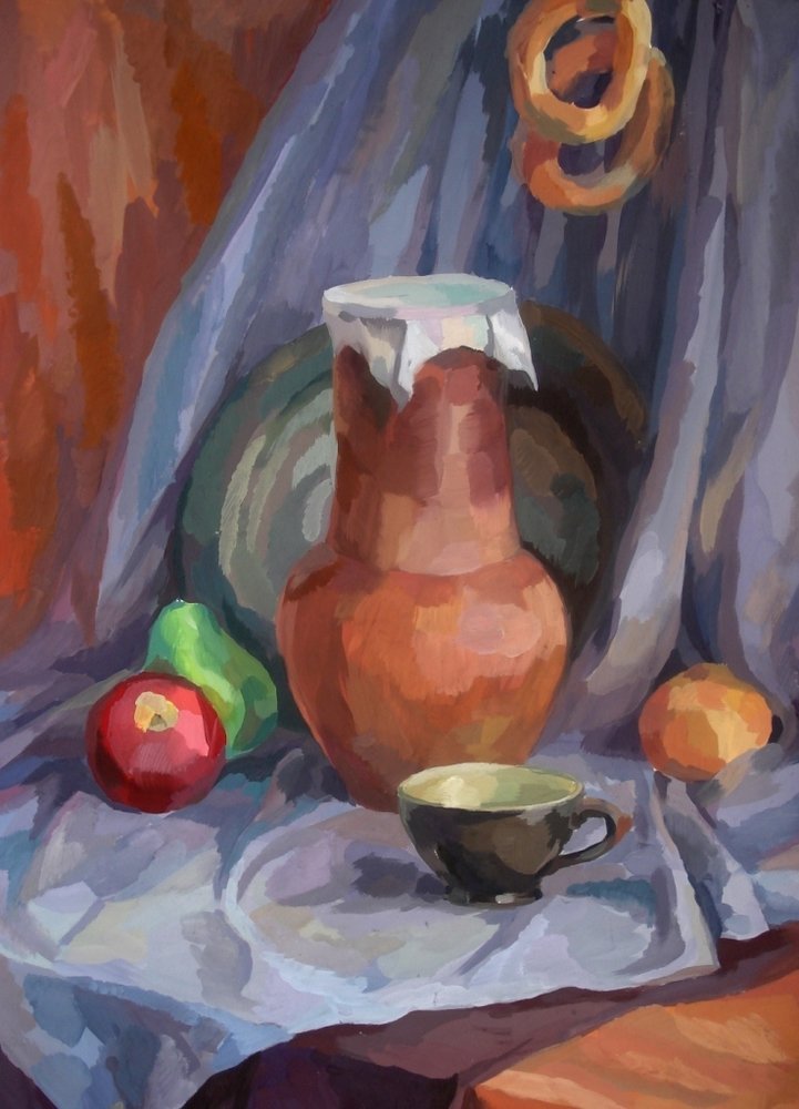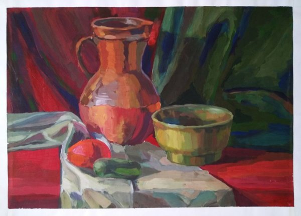 Натюрморт гуашью академическая - это художественная техника, которая представляет собой изображение неподвижных предметов, таких как фрукты, цветы или предметы интерьера, при помощи гуашевых красок. Эта техника отличается особой точностью и реализмом, что дает возможность передать каждую мельчайшую деталь объектов. Гуашь, благодаря своей насыщенности цвета и плотности текстуры, позволяет создавать яркие и насыщенные картины, воссоздавая объем и форму предметов. Академический стиль работы подразумевает строгое выполнение правил пропорций и перспективы, что придает произведению классическую эстетику и художественную гармонию. Натюрморт гуашью академическая - это уникальное сочетание техники и стиля, которое позволяет передать великолепие и красоту неживой природы в ее самом выразительном виде.