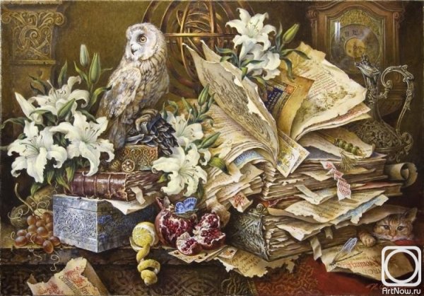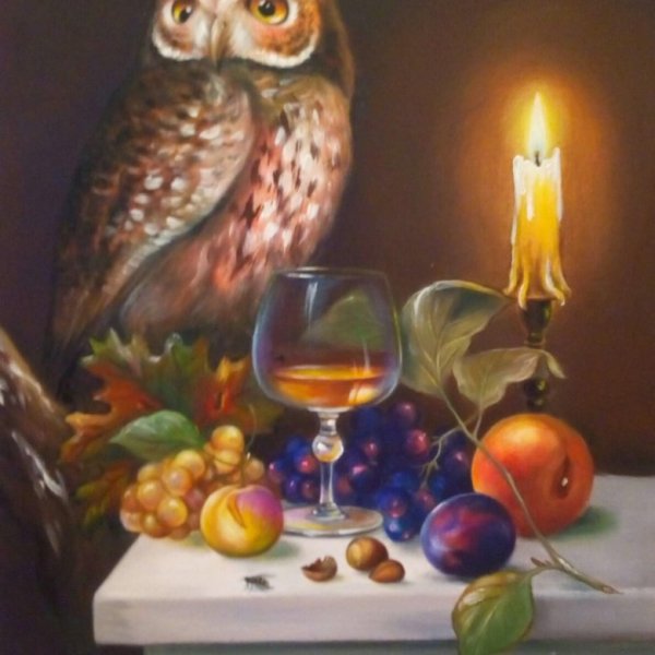 Натюрморт с совой - это удивительное произведение искусства, которое переносит нас в мир природы и загадочности. Эта картина захватывает взгляд своей красотой и деталями: яркие цвета, реалистичные текстуры и прекрасно переданное изображение совы. Она создает атмосферу таинственности и загадочности, вызывая интерес и восхищение у зрителей. Натюрморт с совой - это не только произведение искусства, но и символ мудрости, интеллекта и духовности. Он напоминает нам о важности сохранения природы и нашей связи с животным миром. Это уникальное и впечатляющее произведение искусства, которое навсегда останется в памяти тех, кто его видел.