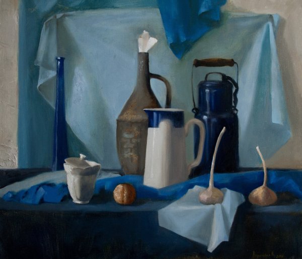 Натюрморт в холодной цветовой гамме – это произведение искусства, которое выделяется своей особой атмосферой и насыщенностью холодными оттенками. Холодные цвета, такие как синий, фиолетовый, зеленый и серый, создают ощущение спокойствия, прохлады и таинственности. В натюрморте, выполненном в этой гамме, предметы могут быть изображены с помощью реалистичной или стилизованной техники, но всегда будут иметь общую черту – они будут вписываться в общую холодную палитру. Такой натюрморт привлекает внимание зрителя своей необычностью и уникальностью, а также позволяет передать эмоции и настроение автора. Он может использоваться как декоративный элемент в интерьере или служить источником вдохновения для других художников. В любом случае, натюрморт в холодной цветовой гамме является интересным и индивидуальным произведением искусства.