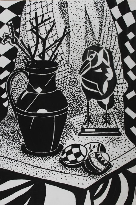 Декоративный натюрморт, созданный с использованием линий, является уникальным и изящным произведением искусства. Линии в этом натюрморте выполняют важную роль, они придают композиции гармонию и ритм. Благодаря различным формам и направлениям линий, образуется эффект движения и динамики, что делает этот натюрморт особенно привлекательным и интересным для наблюдателя. Каждая линия в этом произведении искусства тщательно продумана и расположена таким образом, чтобы создать впечатление особых эмоций и настроения. Декоративный натюрморт линиями украсит любой интерьер и станет ярким акцентом в дизайне помещения.