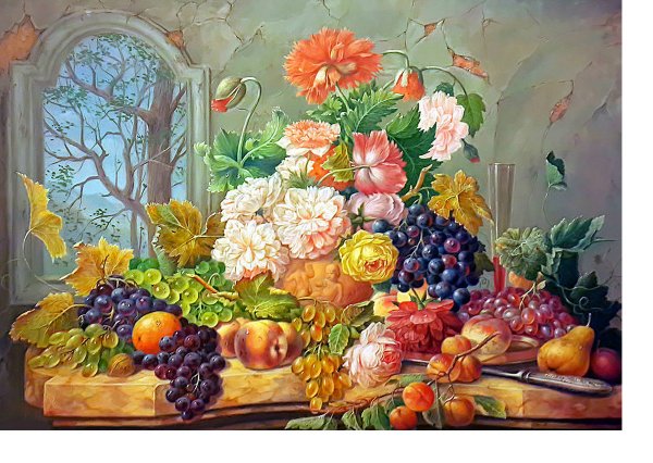 Погрузитесь в мир ярких красок и ароматов с нашим натюрмортом "Цветочно-фруктовый". Это произведение искусства пленит своей живой и экспрессивной композицией, в которой сочетаются свежие цветы и сочные фрукты. Яркая палитра цветов создает ощущение летнего солнца и радости, а разнообразие форм и текстур добавляет интерес и глубину. Наш натюрморт идеально подойдет для декорирования вашего дома или офиса, придавая им уют и элегантность. Позвольте себе насладиться красотой природы каждый день с нашим натюрмортом "Цветочно-фруктовый".