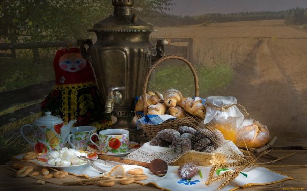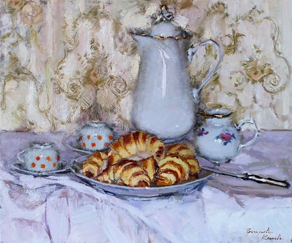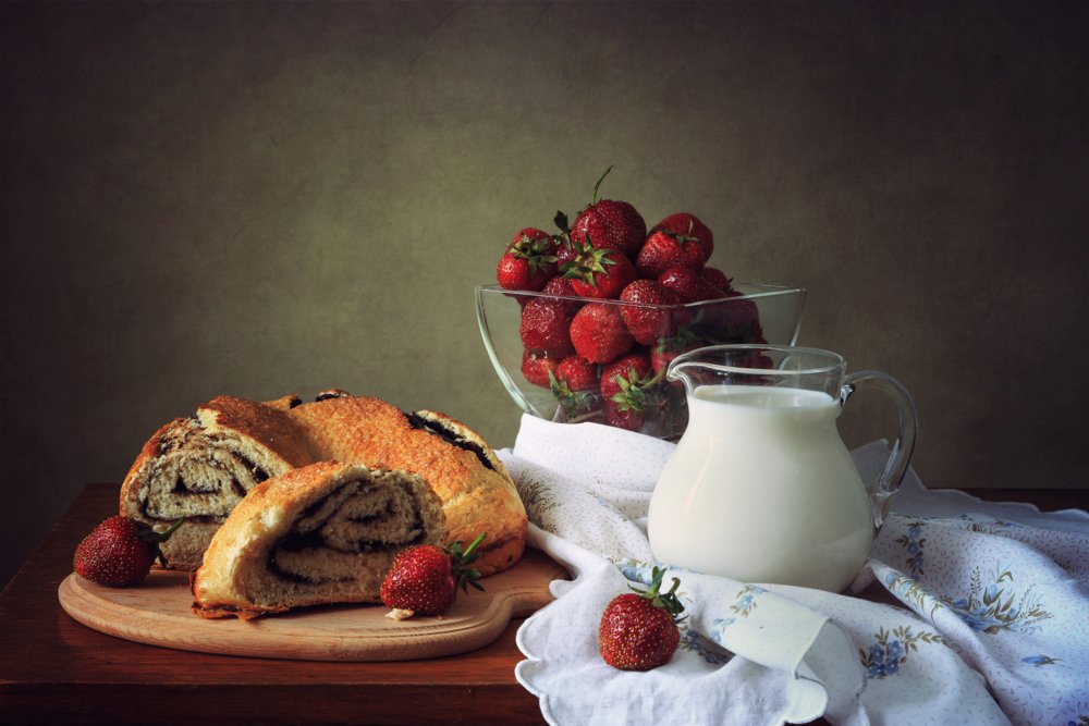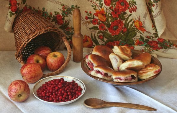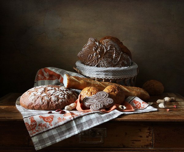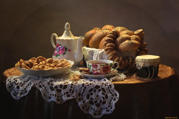 Представьте себе уютную кухню, наполненную ароматами свежей выпечки. В центре внимания находится натюрморт с разнообразными пирогами, кексами и печеньем, которые манят своим сладким запахом и аппетитным видом. Изящно оформленные десерты выглядят так привлекательно, что трудно устоять и не попробовать хотя бы один из них. Богатый выбор выпечки на столе создает атмосферу радости и наслаждения, призывая гостей насладиться вкусом каждого из этих великолепных десертов. Натюрморт с выпечкой - это искусство, сочетающее в себе эстетическую привлекательность и гастрономическое удовольствие.