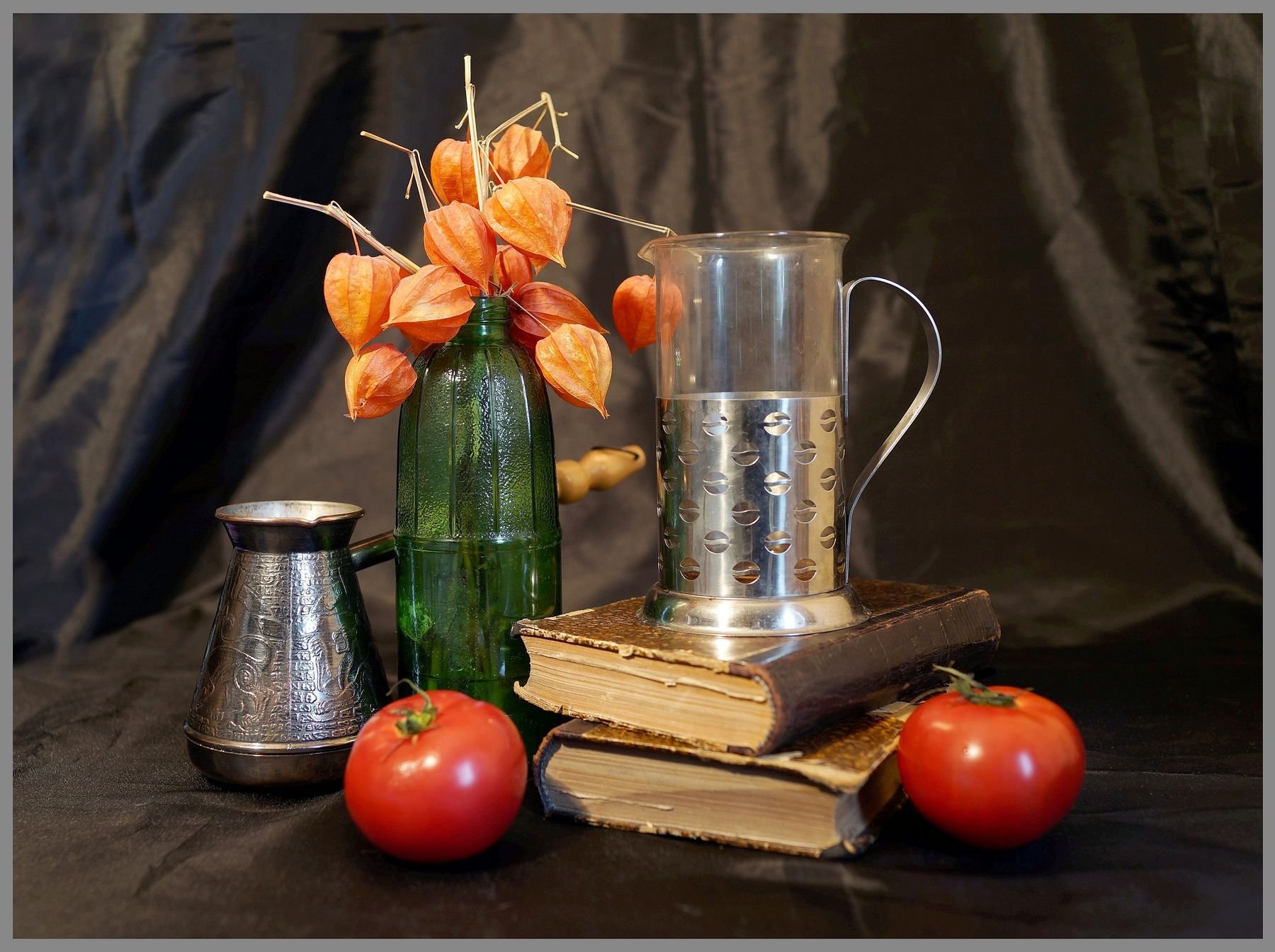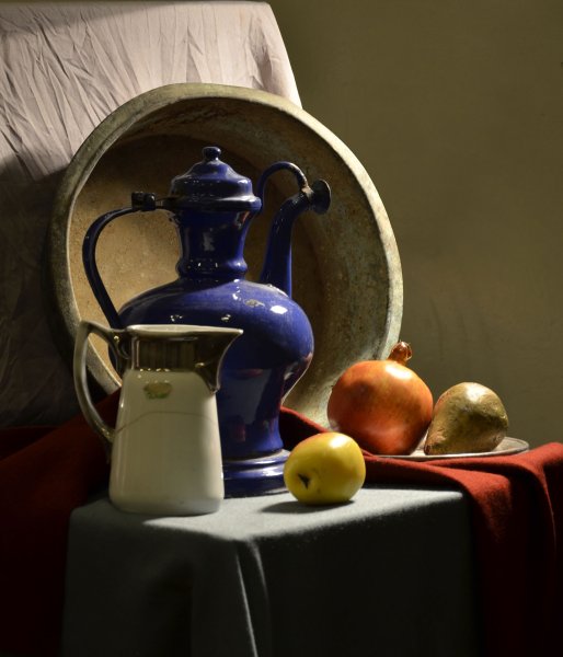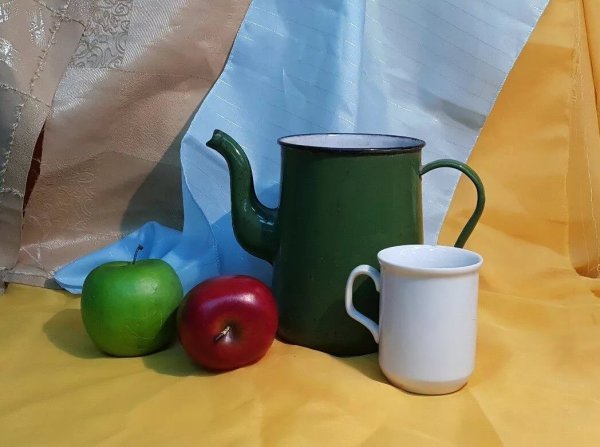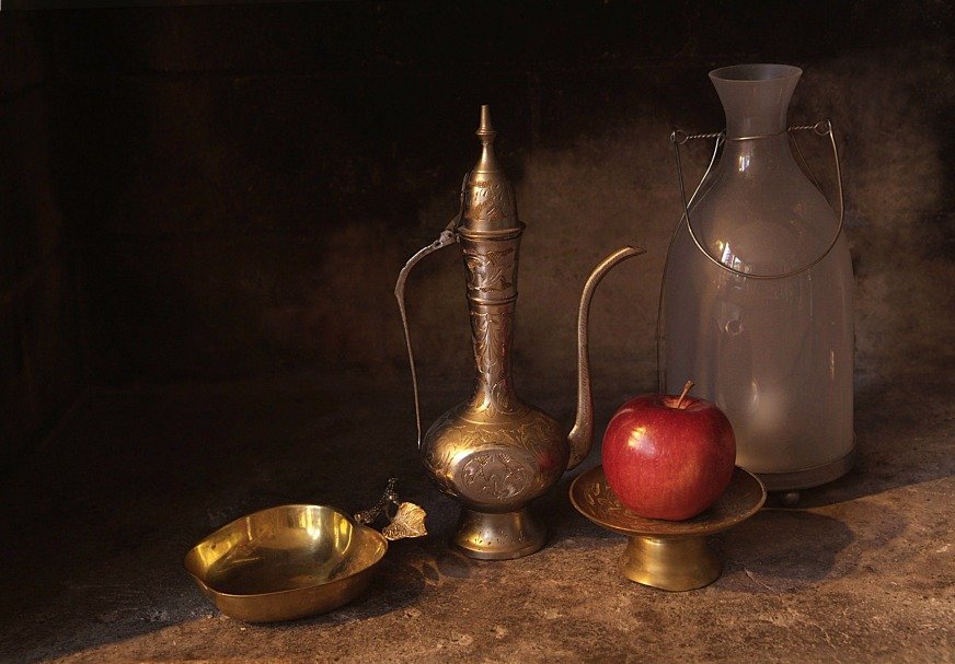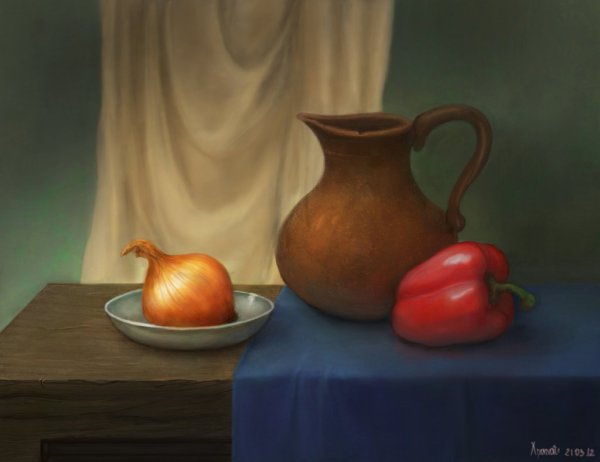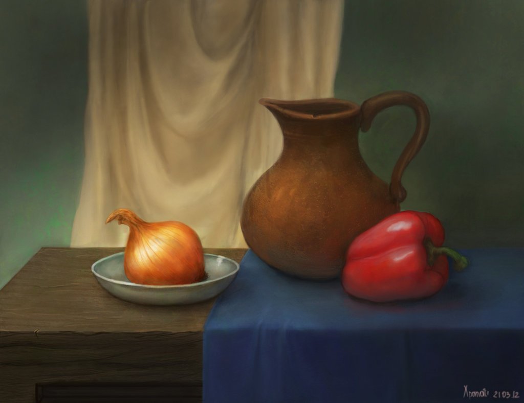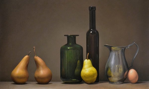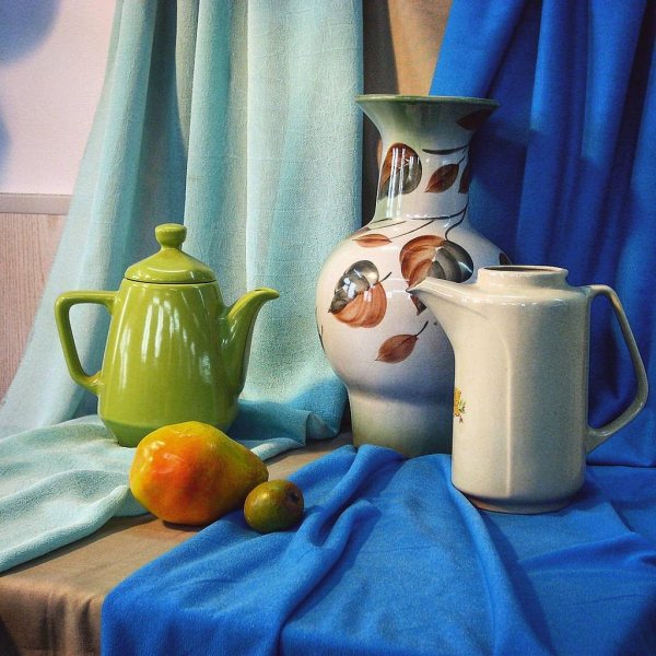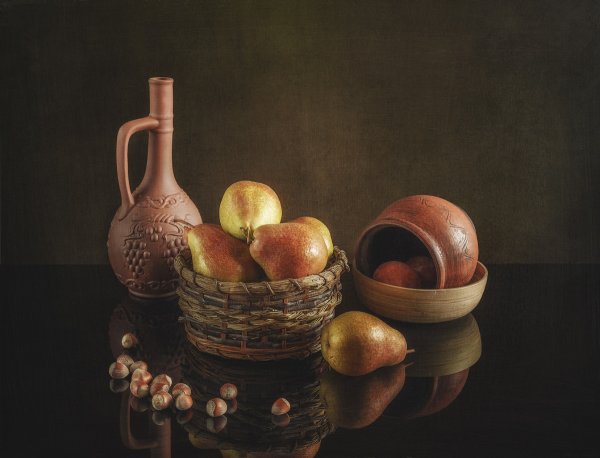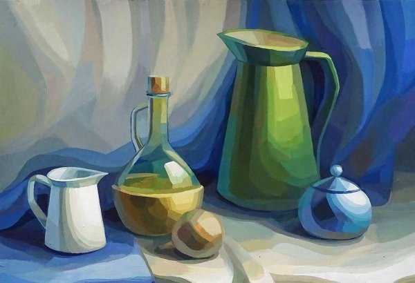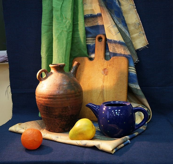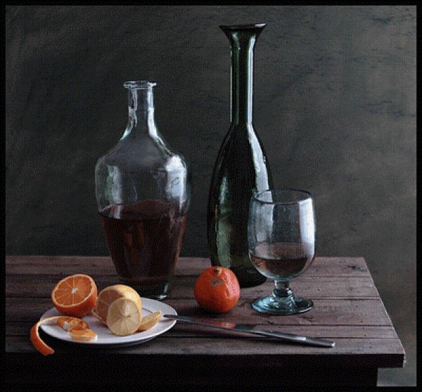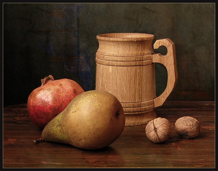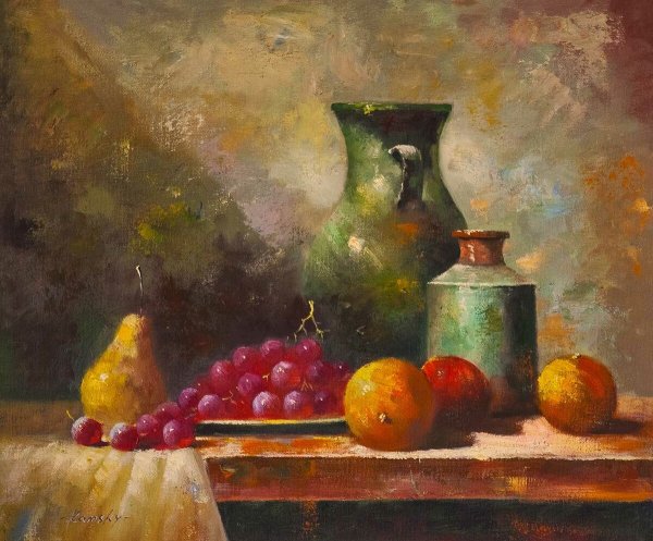 Наш натюрморт из пяти предметов является идеальным акцентом для любого интерьера. В состав этой композиции входят разнообразные предметы, которые создают гармоничное сочетание цветов, форм и текстур. Кристальный ваза с изящной золотистой отделкой становится элегантным основанием, на котором располагаются яркие и сочные фрукты - апельсины, груши и виноград. Рядом с вазой находится стеклянный бокал с красной вином, напоминающий о наслаждении и роскошной атмосфере. В центре натюрморта размещена книга с тонкими страницами и запыленной обложкой, создающая атмосферу умиротворения и интеллектуальности. Этот натюрморт подчеркнет вашу изысканность и утонченный вкус, придавая комнате дополнительную глубину и выразительность.