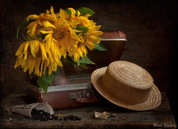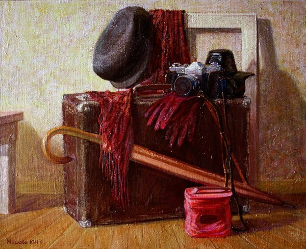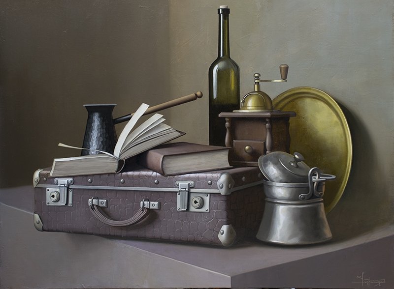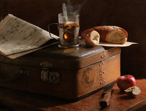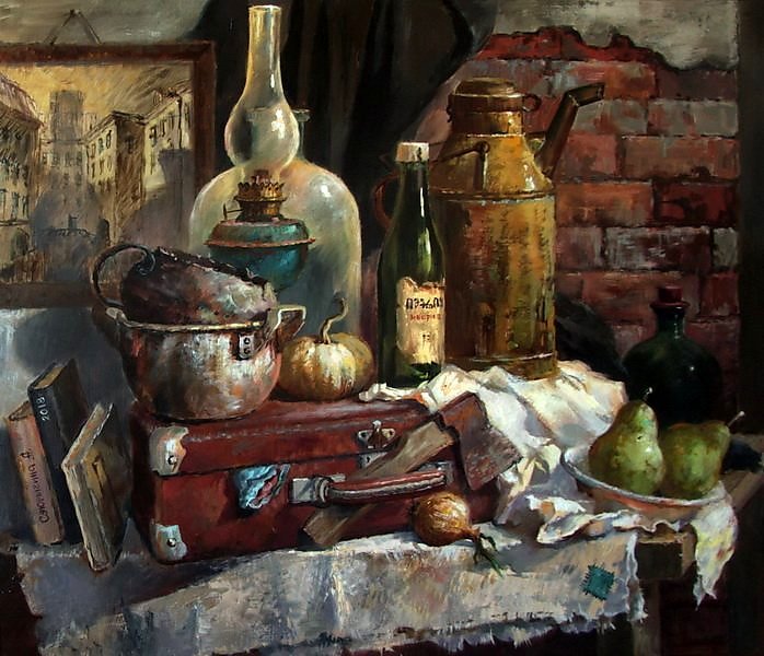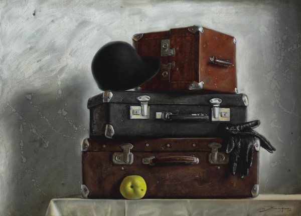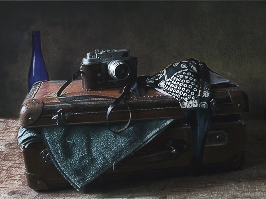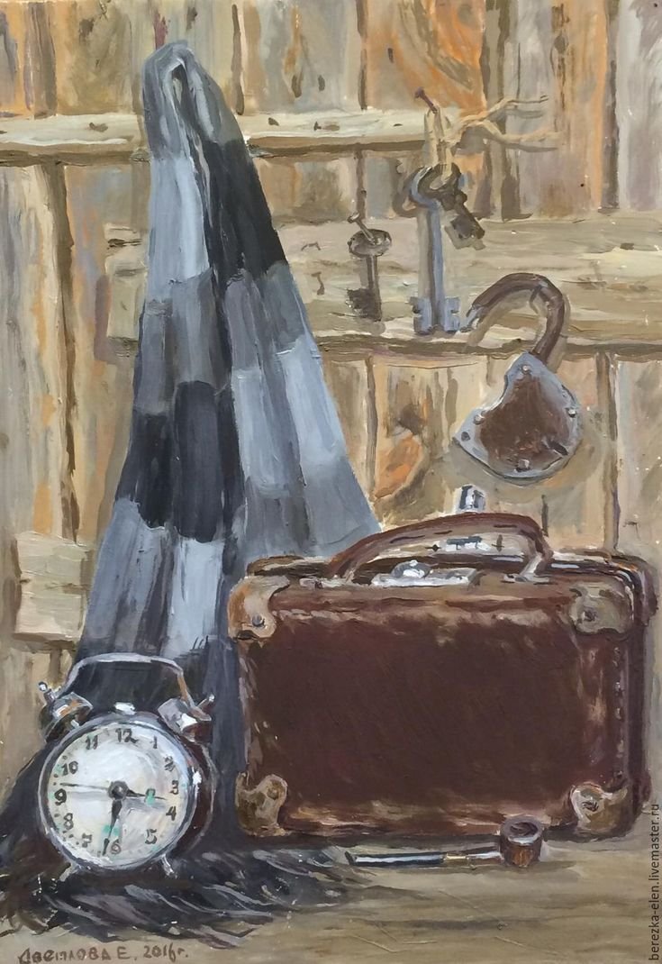 Натюрморт с чемоданом - уникальная и завораживающая композиция, которая переносит нас в мир загадок и тайн. Это произведение искусства, в котором художник передает нам свои мысли и эмоции через обычные предметы на столе. Чемодан, центральный элемент этого натюрморта, символизирует путешествие, свободу и возможность новых приключений. Он вызывает воображение, заставляя задуматься о его содержимом и истории, которую он может рассказать. Каждая деталь этого натюрморта - от ярких цветов до книг и фруктов - создает гармоничное и удивительное сочетание, наполняя пространство живыми красками и энергией. Натюрморт с чемоданом - это не просто изображение, это источник вдохновения и возможности окунуться в фантазийный мир.