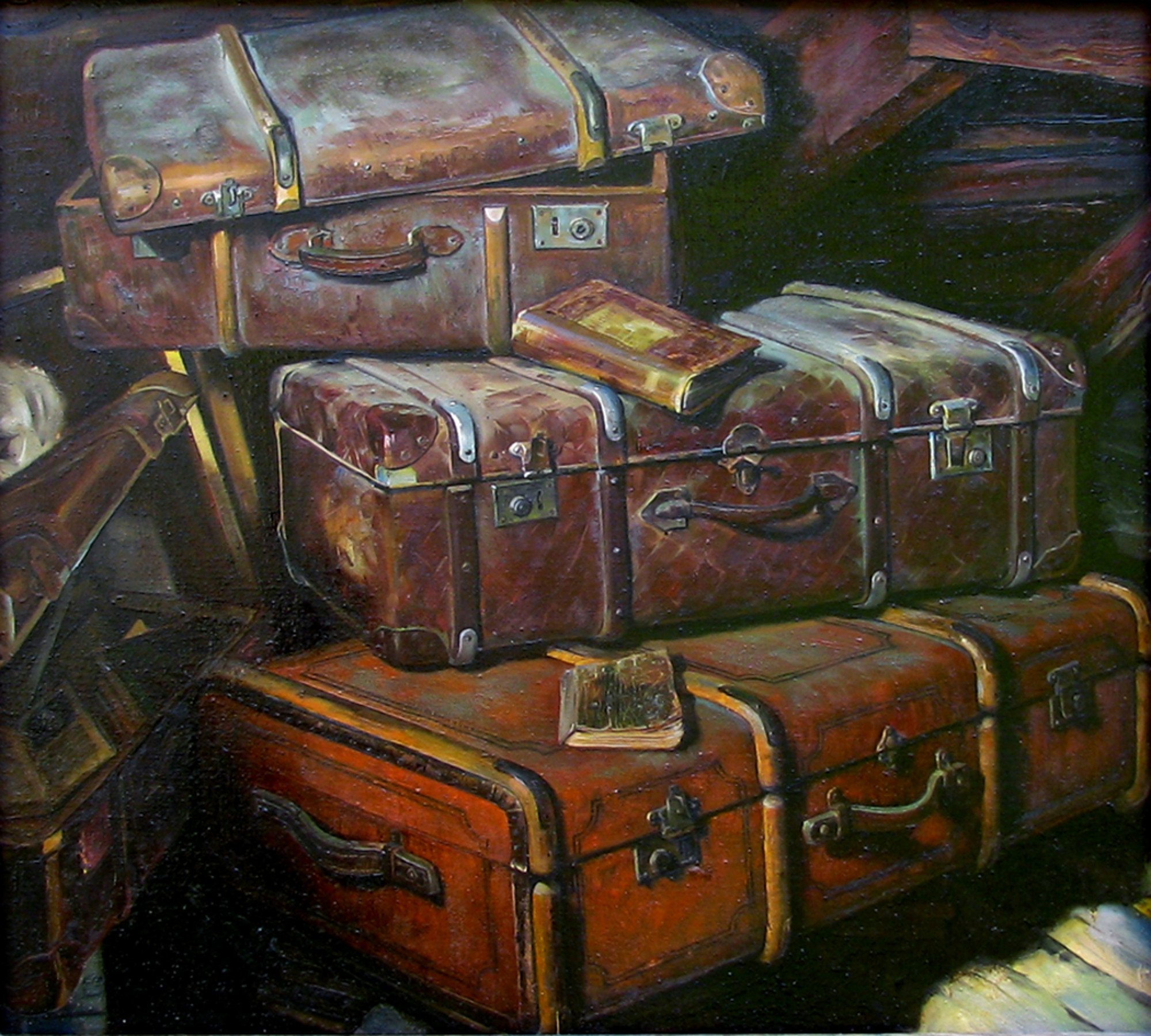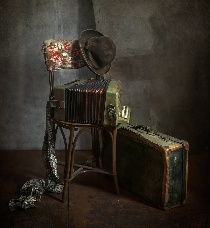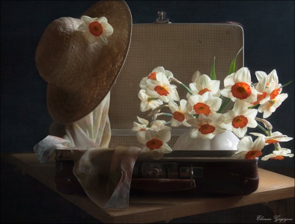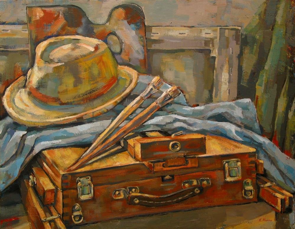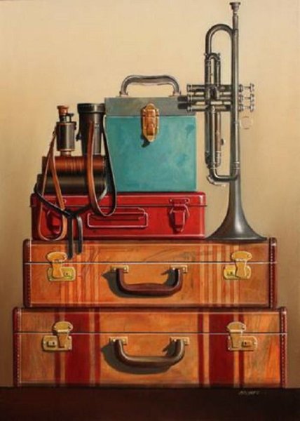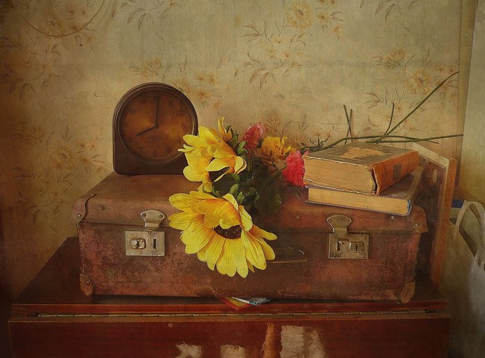 Натюрморт с чемоданом - уникальная и завораживающая композиция, которая переносит нас в мир загадок и тайн. Это произведение искусства, в котором художник передает нам свои мысли и эмоции через обычные предметы на столе. Чемодан, центральный элемент этого натюрморта, символизирует путешествие, свободу и возможность новых приключений. Он вызывает воображение, заставляя задуматься о его содержимом и истории, которую он может рассказать. Каждая деталь этого натюрморта - от ярких цветов до книг и фруктов - создает гармоничное и удивительное сочетание, наполняя пространство живыми красками и энергией. Натюрморт с чемоданом - это не просто изображение, это источник вдохновения и возможности окунуться в фантазийный мир.