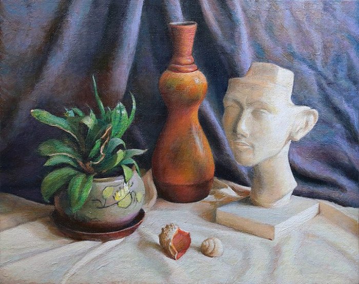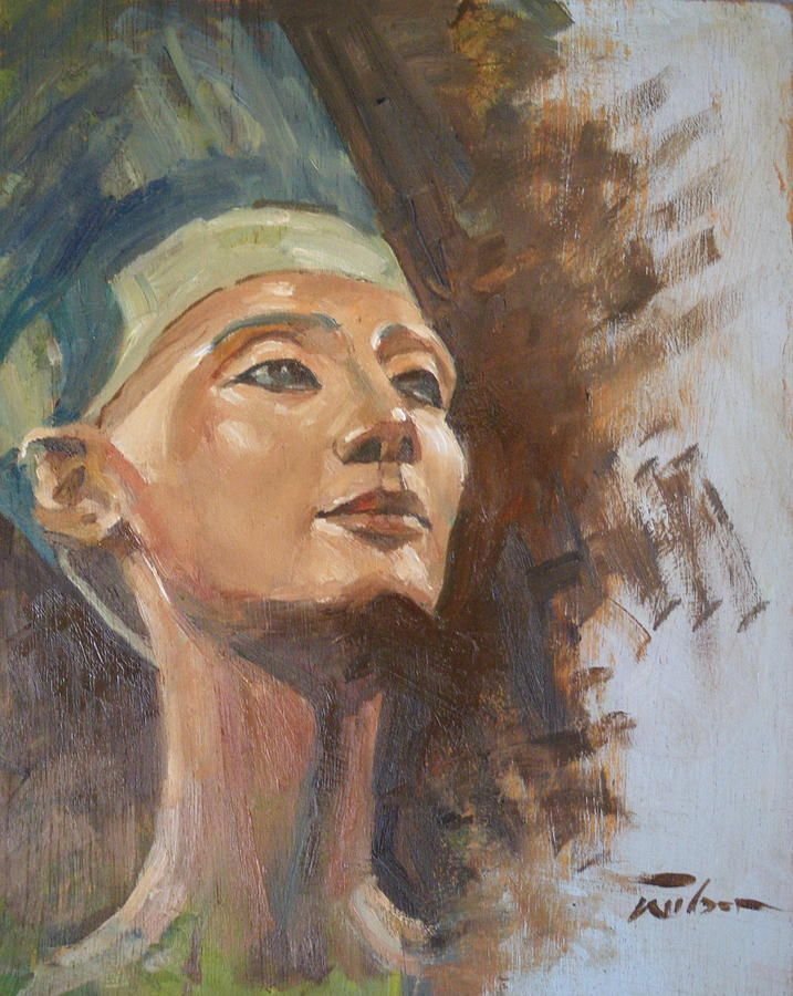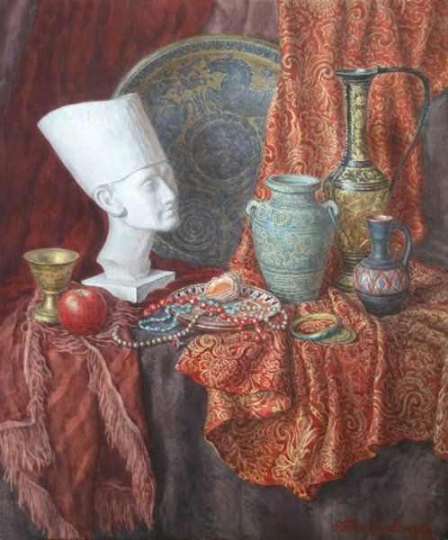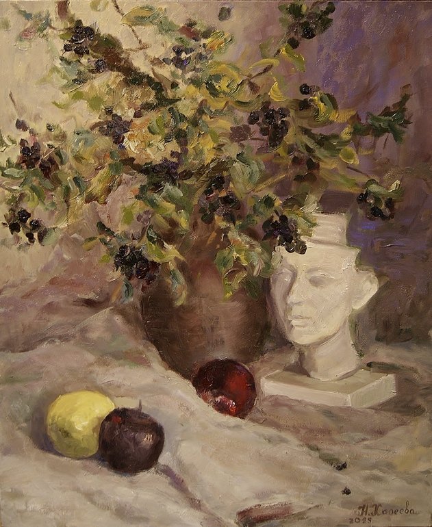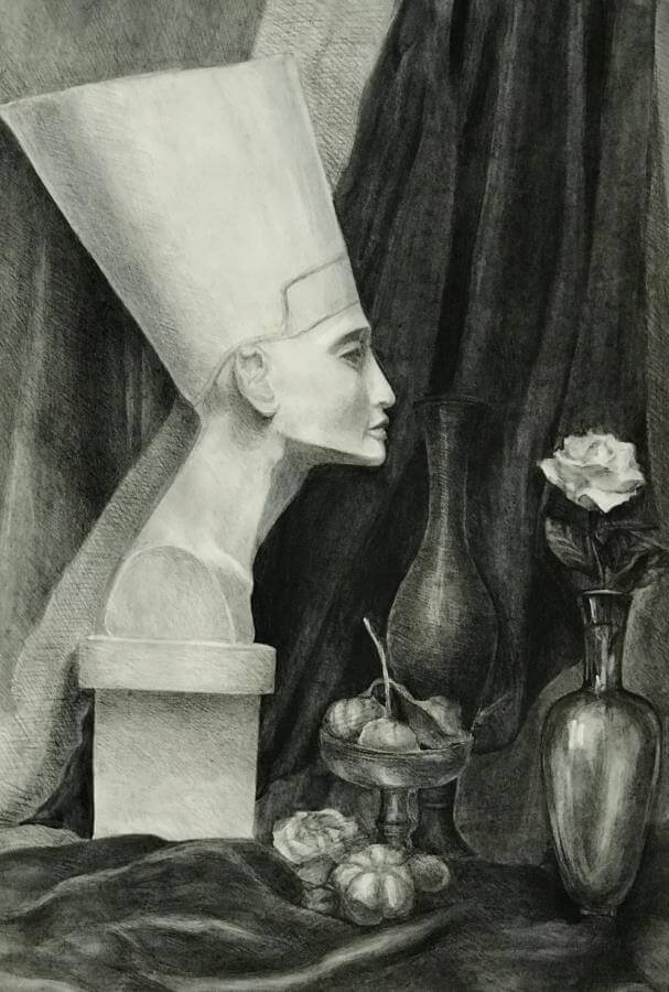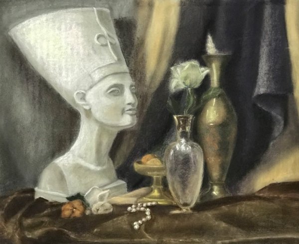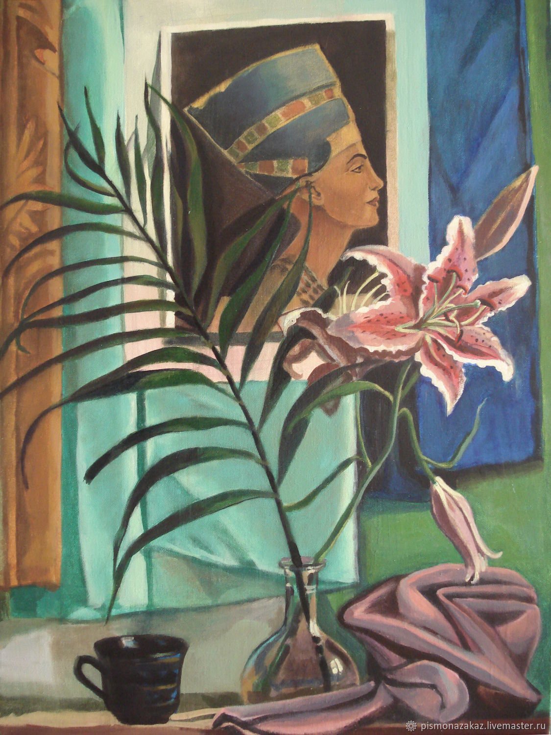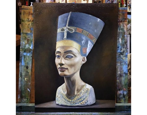 Натюрморт с Нефертити - это произведение искусства, в котором изображена копия знаменитой статуэтки Нефертити. Это непревзойденное произведение эстетической гармонии и изящества, которое мгновенно привлекает взгляды своей красотой и утонченностью. Каждая деталь этого натюрморта, начиная от богатых цветов и фактур до деликатной игры света и тени, создает атмосферу жизни и придаёт произведению особую глубину. Натюрморт с Нефертити является не только декоративным элементом интерьера, но и символом изысканности и элегантности. Он подойдет для любого помещения, добавляя в него шарм и роскошь.