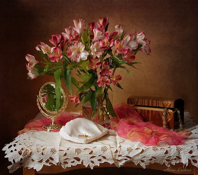 Женский натюрморт – это неповторимая композиция из различных предметов, выбранных с особым вкусом и органично сочетающихся между собой. Это и цветы, расположенные в красивых вазах, и деликатные аксессуары, такие как броши или парфюм, а также элементы интерьера, подчеркивающие элегантность и утонченность образа. Женский натюрморт является не только прекрасным украшением интерьера, но и отражением особого стиля и характера своей обладательницы. Он создает атмосферу уютности и романтики, придающую комнате нотку женственности. Каждый женский натюрморт – это уникальное произведение искусства, способное передать настроение и эмоции своей владелицы.