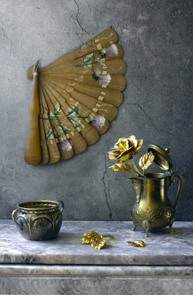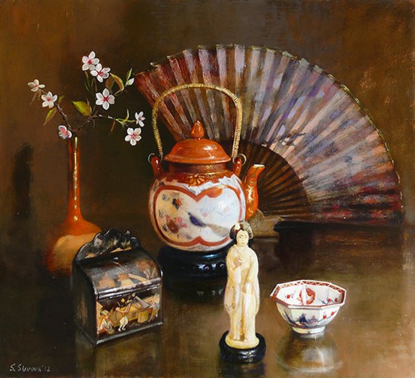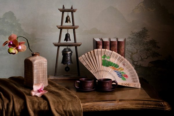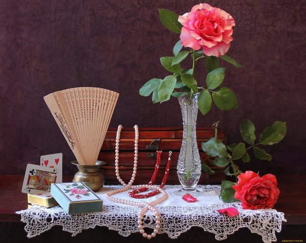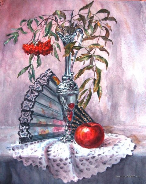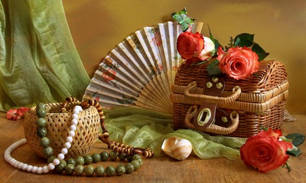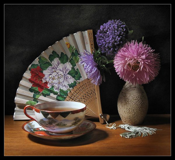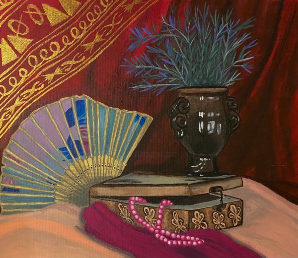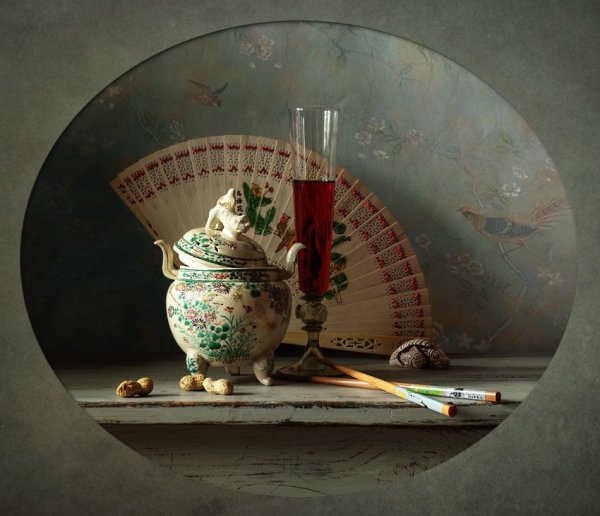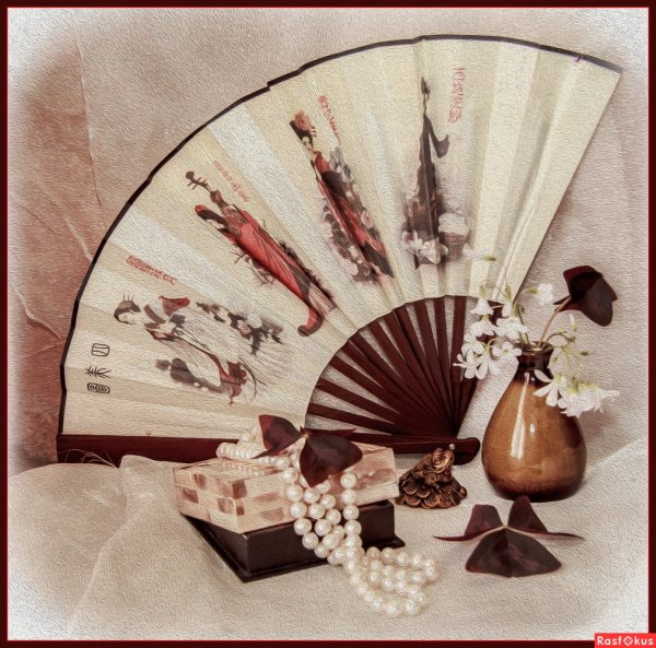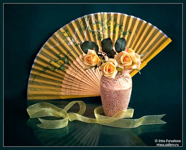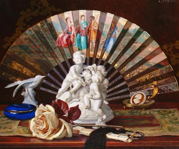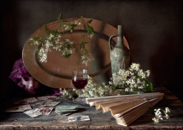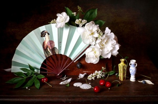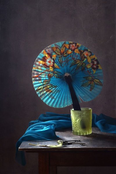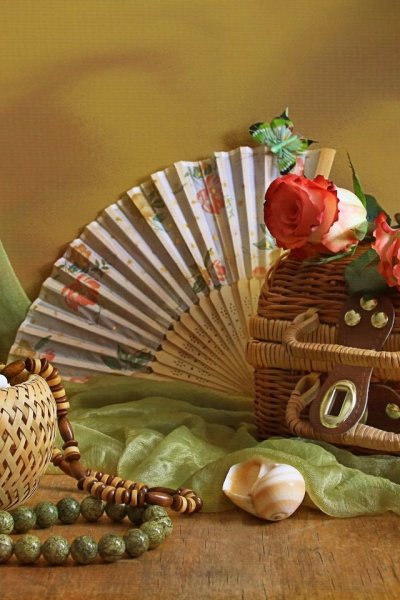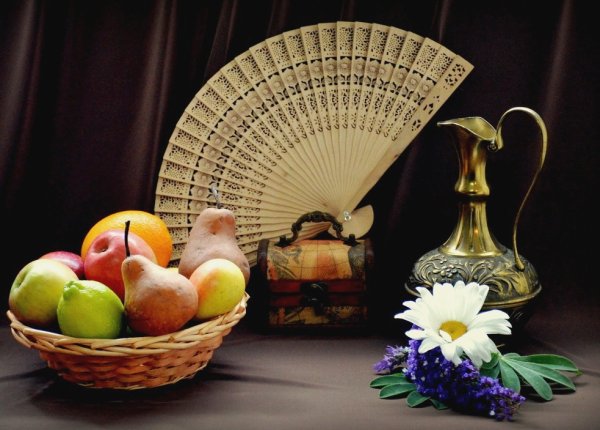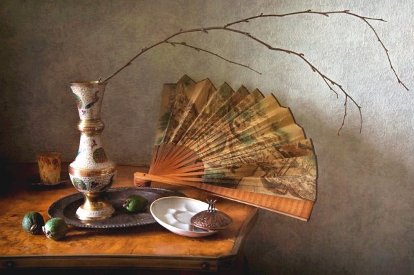 Натюрморт с веером - это произведение искусства, которое захватывает взгляд своей элегантностью и нежностью. На этой картинах изображен веер, символизирующий женскую красоту и грацию. Предметы на натюрморте расположены с таким мастерством, что создается ощущение их реальности и объемности. Каждая деталь проработана до мельчайших элементов, отражая великолепие и художественную ценность этого произведения. Возможно, автор стремился передать чувство спокойствия и гармонии, что делает этот натюрморт идеальным для украшения интерьера или коллекции истинных ценителей искусства.