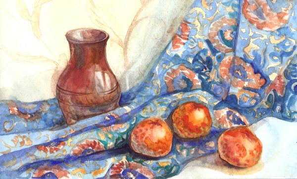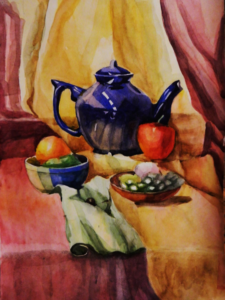 Контрастный натюрморт акварелью - это произведение искусства, которое поражает своей яркостью и выразительностью. Комбинация ярких и насыщенных цветов создает удивительный контраст, который привлекает взгляд и не оставляет равнодушными зрителей. Различные объекты и предметы, изображенные на натюрморте, оживают под мастерством художника, будто словно можно потрогать и почувствовать их текстуру и форму. Акварельная техника придает работе особую легкость и прозрачность, создавая эффект проникновения света сквозь слои красок. В результате получается неповторимое произведение, способное воплощать разнообразные эмоции и настроения, а также стать идеальным украшением для интерьера или подарком для любителей искусства.