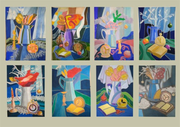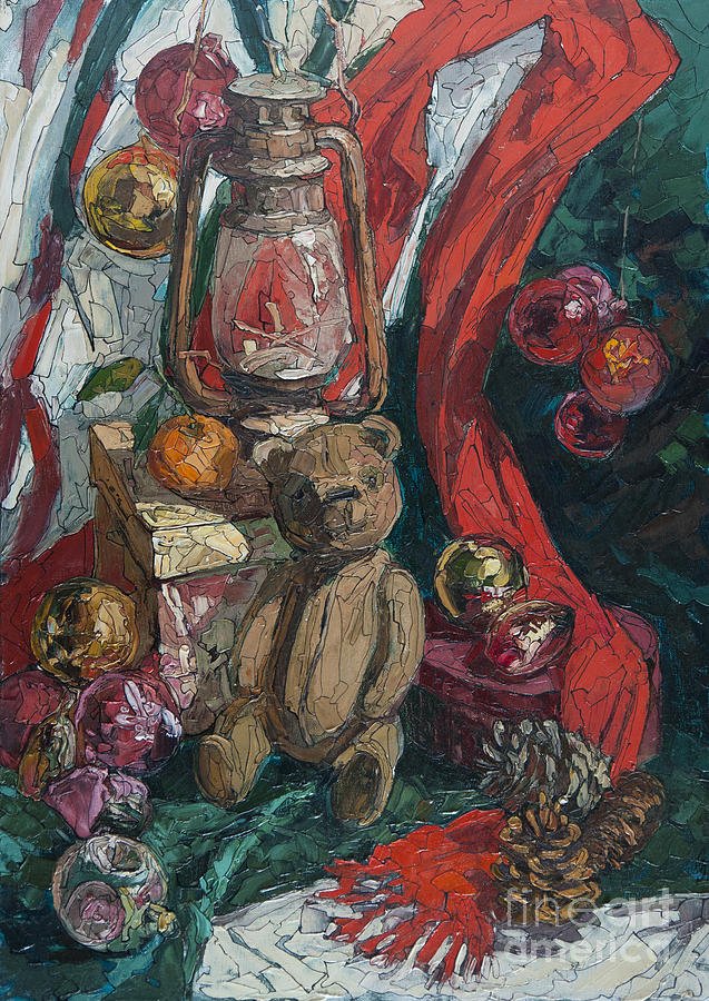Новогодний стилизованный натюрморт - это идеальная декорация для создания новогодней атмосферы в вашем доме или офисе. Этот натюрморт сочетает в себе разнообразные элементы, такие как елочные игрушки, гирлянды, шары, конфеты, мишуры и другие новогодние аксессуары. Он является прекрасным способом добавить праздничное настроение и уют в любое помещение. Благодаря своей яркой цветовой гамме и оригинальному дизайну, этот стилизованный натюрморт будет привлекать внимание и радовать глаза всех гостей и жителей вашего дома. Позвольте себе насладиться волшебством новогодних праздников с этим красивым и стильным декором.