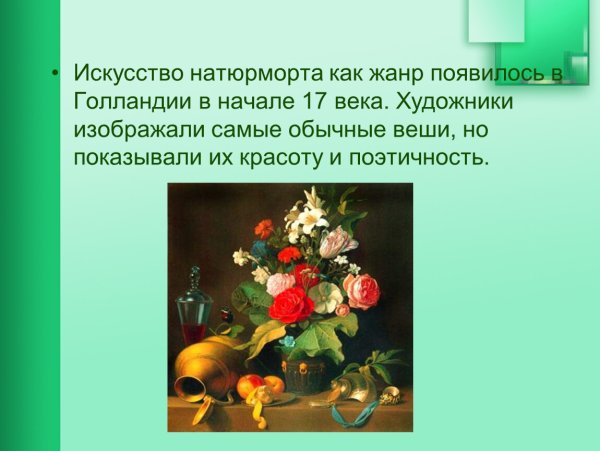 Натюрморт создает прекрасный эффект.