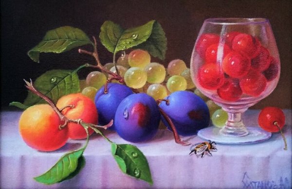 Натюрморт с фруктами красками - это произведение искусства, которое олицетворяет красоту природы и богатство цветов. В этом натюрморте можно увидеть яркие и сочные фрукты, расположенные на фоне разнообразных оттенков и оттенков. Каждый фрукт демонстрирует свою уникальность и изысканность, будь то сочная красная яблоки, сладкий апельсин или ароматная груша. Цветовая палитра образца с фруктами полна энергии и жизни, привлекая внимание зрителя и несущая радость и позитивное настроение. Описание натюрморта с фруктами красками вызывает чувство аппетита и желание насладиться всей этой изобилием и красотой природы.