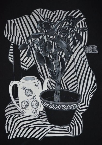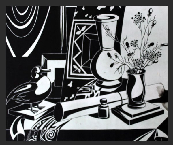 Стань свидетелем удивительного сочетания классики и современности с нашим стилизованным черно-белым натюрмортом. В этом произведении искусства черные и белые оттенки великолепно соседствуют, создавая эффект глубины и контраста. Каждый предмет в композиции, будь то цветок, фрукт или предмет интерьера, тщательно выбран и расположен для достижения гармонии и эстетического воздействия. Стилизация черно-белыми элементами добавляет особой красоты и загадочности этому натюрморту, делая его прекрасным дополнением для любого интерьера.