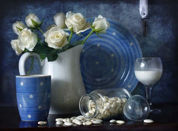 Наш голубой натюрморт - это яркое произведение искусства, которое привлекает внимание своей красотой и элегантностью. Каждый элемент этого композиционного шедевра тщательно подобран, чтобы создать гармоничное сочетание цветов и форм. Голубые оттенки, преобладающие в этом натюрморте, придают ему особую атмосферу спокойствия и миролюбия. Благодаря мастерскому использованию света и тени, каждая деталь этого произведения оживает перед глазами зрителя. Наш голубой натюрморт - идеальное украшение для любого интерьера, добавляющее нотку изысканности и эстетического удовольствия.