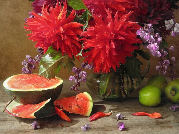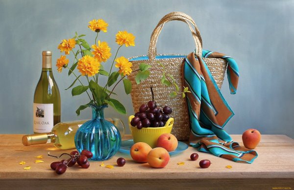 Красочный натюрморт - это произведение искусства, которое олицетворяет живописную красоту и богатство цветов. Это композиция различных предметов, как правило, цветов, фруктов, посуды или других объектов, установленных на фоне яркого полотна. Каждый элемент натюрморта отражает свою собственную уникальность и природную прелесть, создавая гармоничное впечатление в целом. Красочная палитра добавляет нотки эмоций и оживляет каждую деталь, заставляя зрителя ощущать всю красоту окружающего мира. Изображая жизнь и ее богатство через цвета и формы, красочный натюрморт не только радует глаз, но и вызывает чувство восторга и восхищения перед прекрасными творениями природы и искусства.