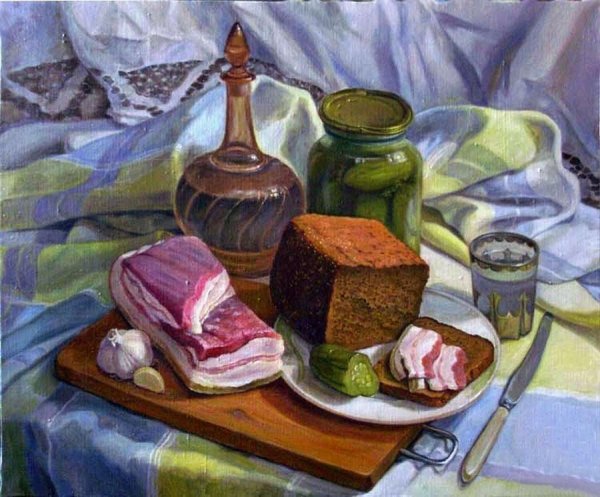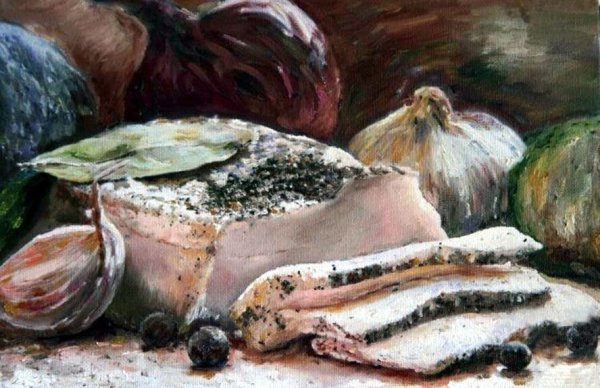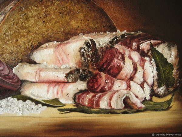 Натюрморт с салом - это изысканное и привлекательное произведение искусства, которое великолепно передает красоту и обаяние этого традиционного продукта. В этом натюрморте можно увидеть сочетание ярких цветов и текстур, создающих ощущение аппетитности и изысканности. Сало, как основной элемент композиции, представлено в различных формах и размерах, отобразив его богатство и разнообразие. Изображение сало на натюрморте позволяет зрителю оценить не только его внешнюю привлекательность, но и важность этого продукта в культуре и традициях. Комбинация свежести, мягкости и хрустящей текстуры сала на натюрморте придают ему жизнь и реалистичность, заставляя зрителя словно почувствовать его вкус и аромат. Натюрморт с салом - это не только красивое произведение искусства, но и напоминание о важности и богатстве нашей национальной кухни.
