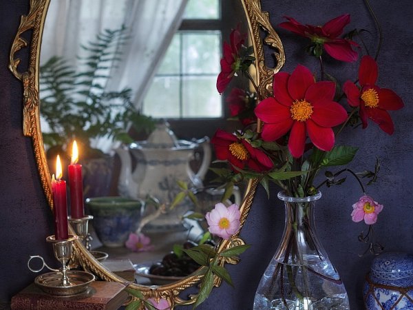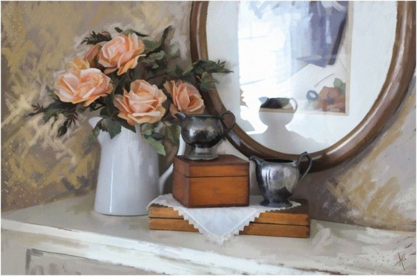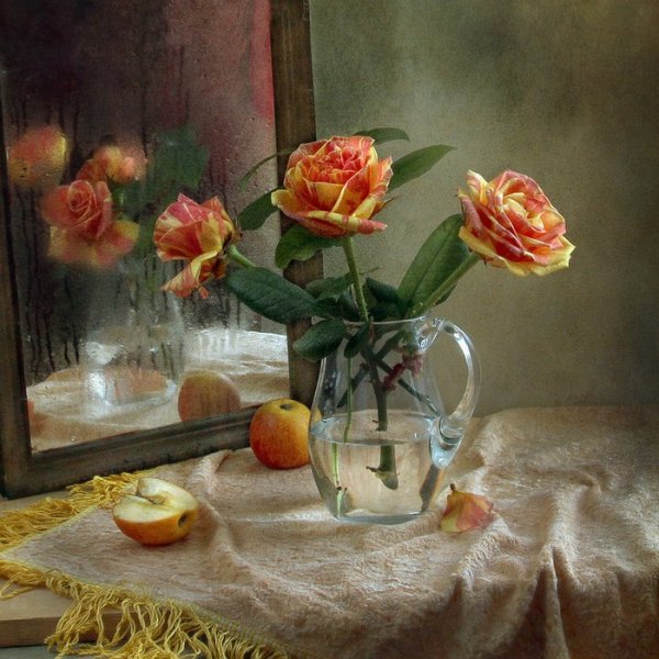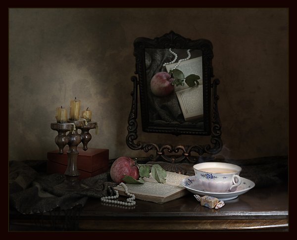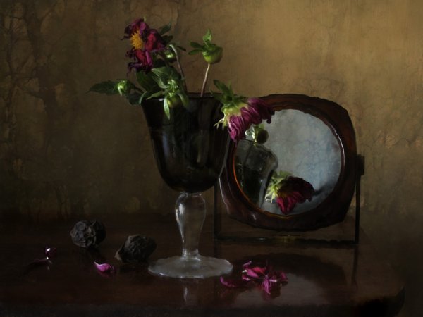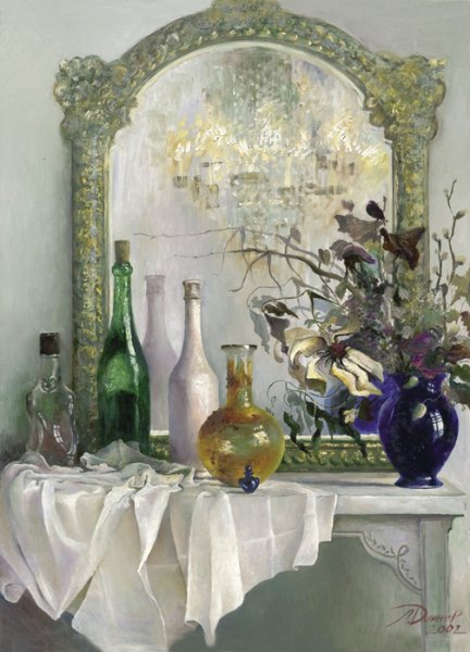 Натюрморт с зеркалом - это произведение искусства, в котором художник изображает различные предметы, сочетая их с зеркалом. Зеркало в данном случае выступает не только как элемент композиции, но и как символический объект, добавляющий глубину и интерес к работе. Оно создает дополнительные отражения, расширяет пространство и придает особую атмосферу произведению. Натюрморт с зеркалом может быть выполнен в разных стилях и техниках, от классического реализма до абстракции, каждый раз удивляя зрителя своей оригинальностью и творческим подходом художника. Это произведение способно заинтересовать и вдохновить, вызывая у зрителя размышления о своем отношении к окружающему миру и его отражению в зеркале.