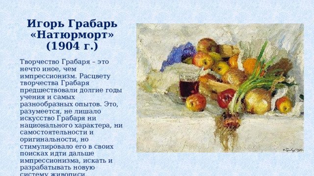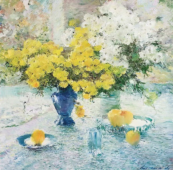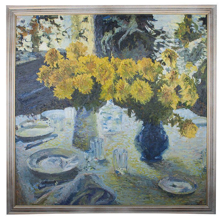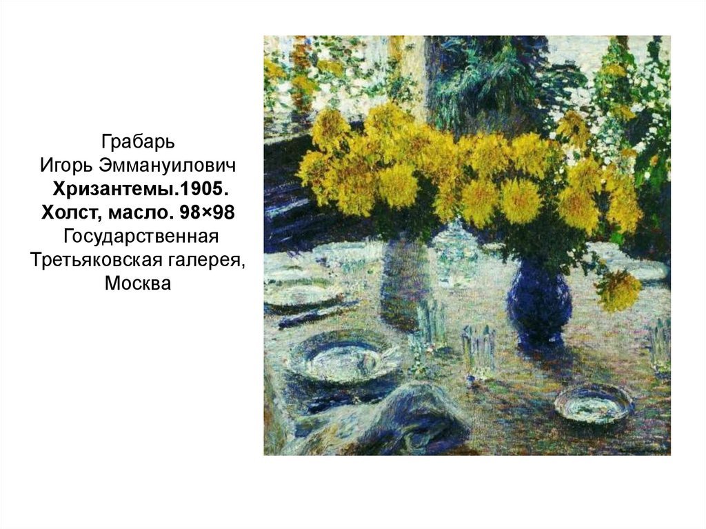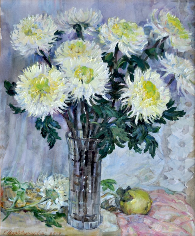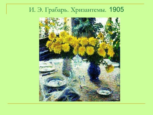 Натюрморт с хризантемами, созданный художником-грабарем, является великолепным произведением искусства. Каждая деталь этой живописи тщательно проработана, отражая мастерство автора и его умение передать красоту природы. Цветочные бутоны хризантем наполняют картину свежестью и яркостью, создавая атмосферу жизни и радости. Вся композиция натюрморта органично сочетает в себе различные оттенки и текстуры, заставляя зрителя ощущать гармонию и эстетическое наслаждение. Это произведение искусства открывает новые грани красоты хризантем и демонстрирует великолепие их форм и цветовых сочетаний. Оно способно внести нотку изысканности и роскоши в любое помещение, становясь уникальным элементом интерьера или предметом коллекционирования для ценителей искусства.