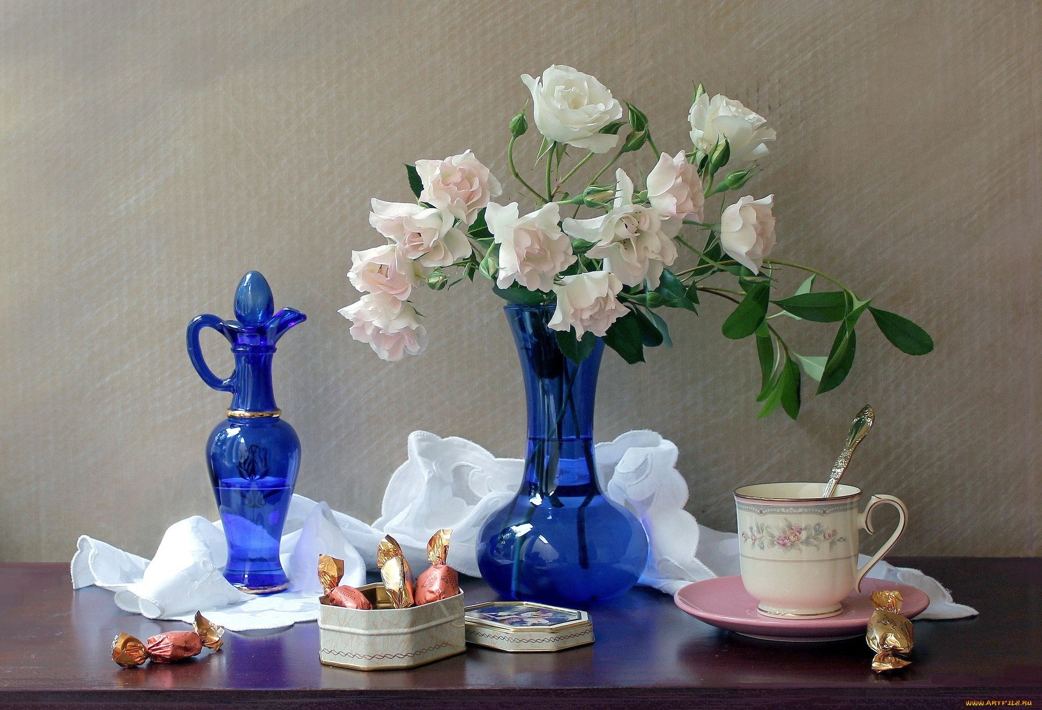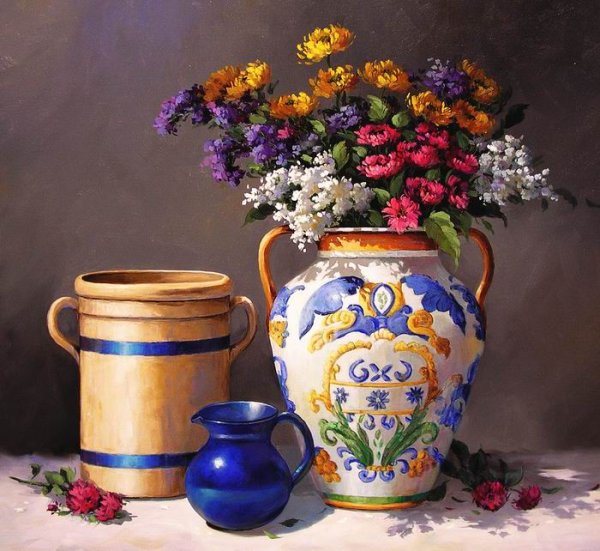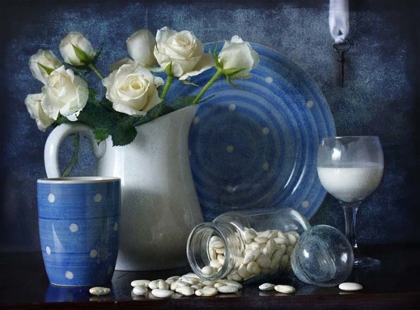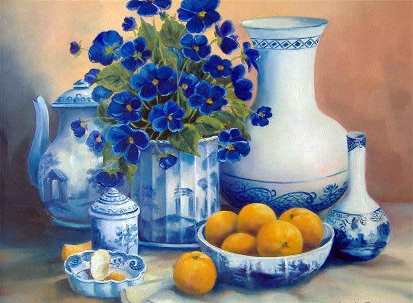 Синяя ваза с натюрмортом - это изящное и элегантное дополнение к любому интерьеру. Ее яркий и насыщенный цвет создает ощущение гармонии и спокойствия, придающего комнате особую атмосферу. Натюрморт, размещенный в этой вазе, добавляет в помещение живые и свежие нотки природы. Ваза станет прекрасным акцентом в гостиной, спальне или даже офисе, подчеркивая ваш художественный вкус и чувство стиля. Красота и уникальность этого предмета не оставят равнодушными никого, и он станет прекрасным подарком для близких или коллег.