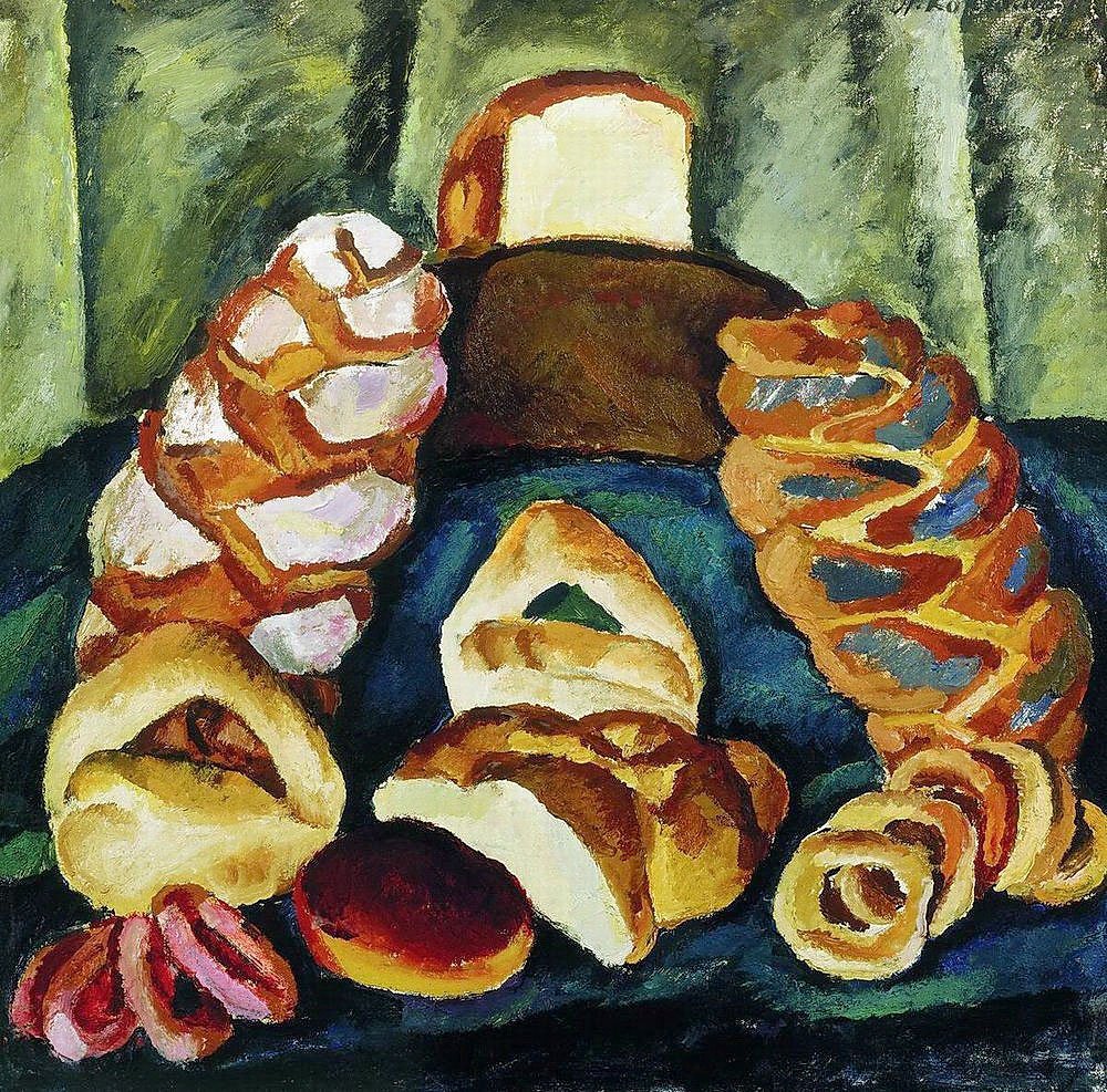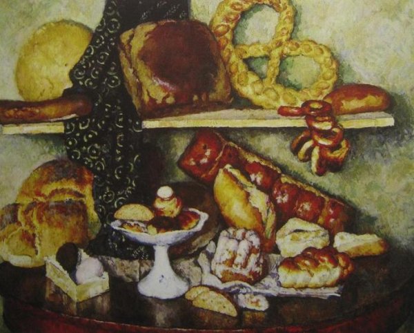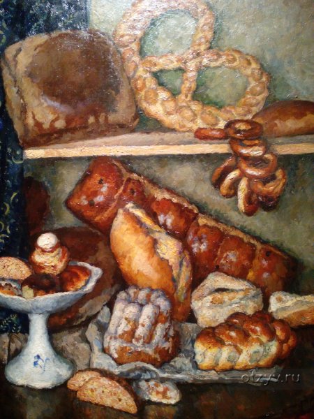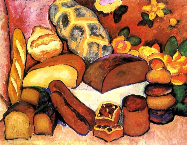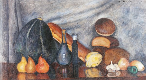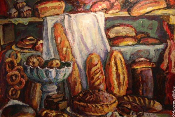 Натюрморт с хлебом – произведение российского художника Ильи Машкова, который жил и работал в конце 19-го и начале 20-го века. В этой картинах художник передает простоту и естественность повседневной жизни, используя традиционный предмет натюрморта – хлеб. Хлеб на картине символизирует пищу, обыденность и благополучие. Сочетание ярких красок и гладкой, масляной текстуры создает ощущение полноты и объемности. Это произведение является отличным примером мастерства Машкова и его способности запечатлеть красоту обычных вещей.