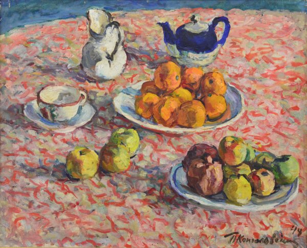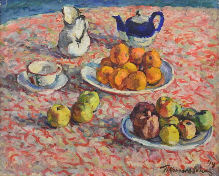 Петр Петрович Кончаловский - выдающийся российский художник, мастер натюрморта. В его работах воплощается уникальное слияние классических традиций и современности. Натюрморты Кончаловского поражают своей яркостью, гармоничным сочетанием цветов и изысканной композицией. Он мастерски передает эффекты света и тени, создавая реалистичные и ожившие картины. Каждое произведение позволяет зрителю окунуться в мир красоты и умиротворения, насладиться детальностью и прекрасным исполнением. Натюрморт Петра Петровича Кончаловского – это подлинное произведение искусства, которое оставляет неизгладимое впечатление и вдохновляет своим великолепием.