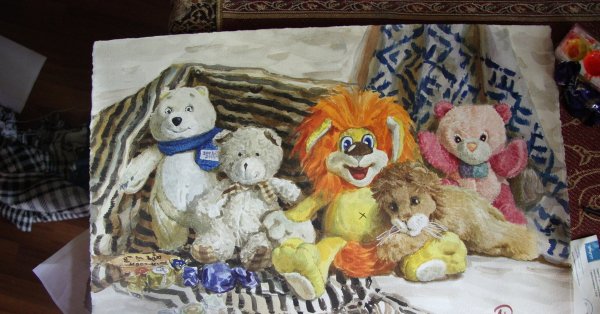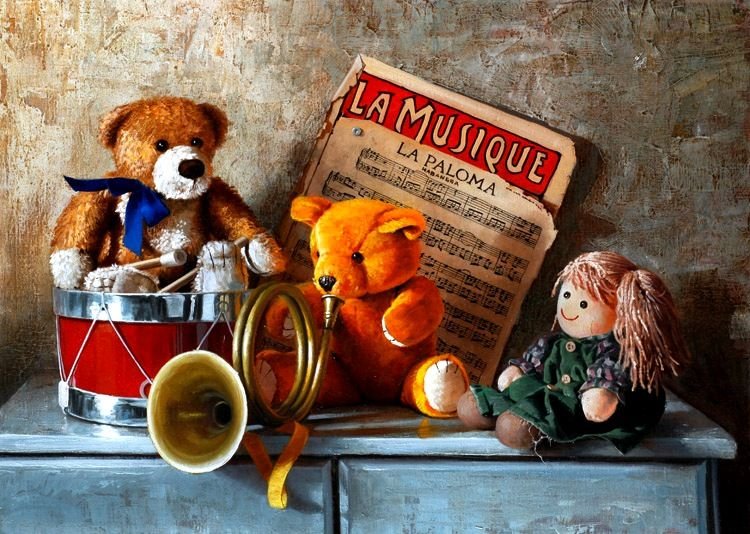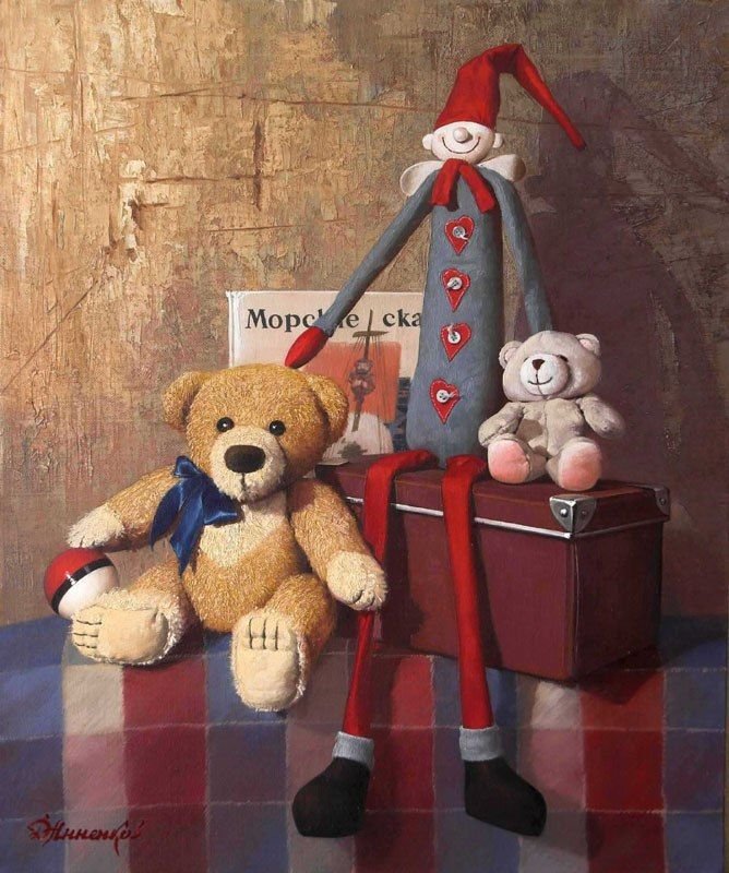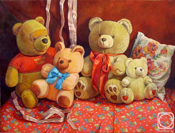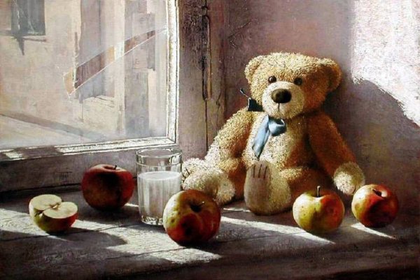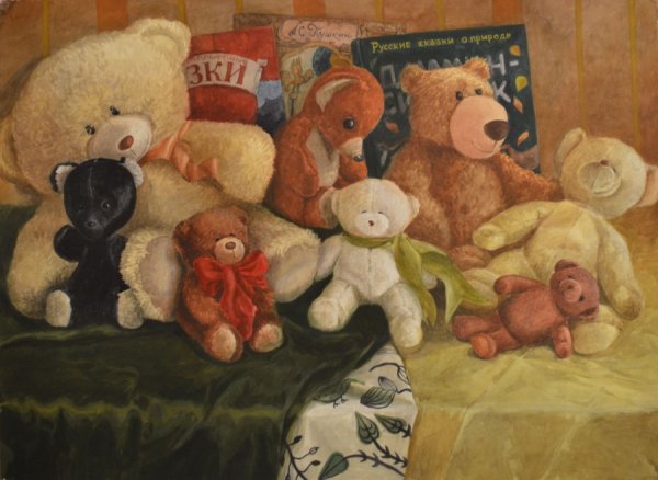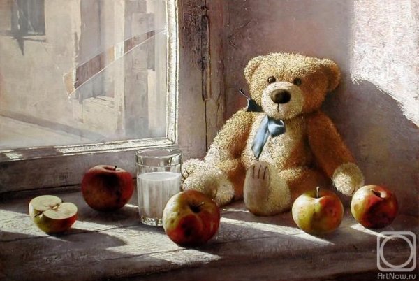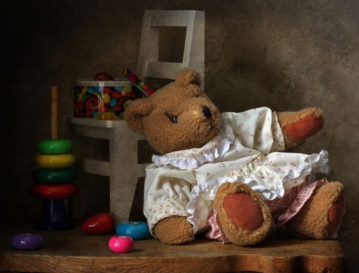 Этот натюрморт с мягкой игрушкой привлекает взгляд своей теплотой и нежностью. Композиция передает ощущение умиротворения и детской радости, создавая атмосферу комфорта и безмятежности. Мягкая игрушка, занимающая центральное место на сцене, обрамлена разнообразными предметами, такими как цветы, книги или другие игрушки, которые добавляют гармонии и сбалансированности. Яркие цветовые акценты и мягкий свет создают приятное впечатление и подчеркивают теплоту и уют этой сцены. Этот натюрморт с мягкой игрушкой является идеальным элементом декора для детской комнаты, спальни или гостиной, добавляя в интерьер нотку игривости и доброты.