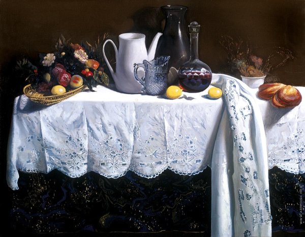 Натюрморты с белой скатертью - это уникальное и элегантное искусство, в котором красота предметов сочетается с нежностью и чистотой белой ткани. Каждый элемент натюрморта тщательно размещен на скатерти, создавая гармоничную композицию и передавая атмосферу спокойствия и умиротворения. Белый цвет скатерти придает особую свежесть и легкость всему произведению и позволяет каждому предмету выразить свою индивидуальность и уникальность. Натюрморты с белой скатертью станут прекрасным дополнением для интерьера, подчеркнут его стиль и создадут ощущение изысканности и роскоши.