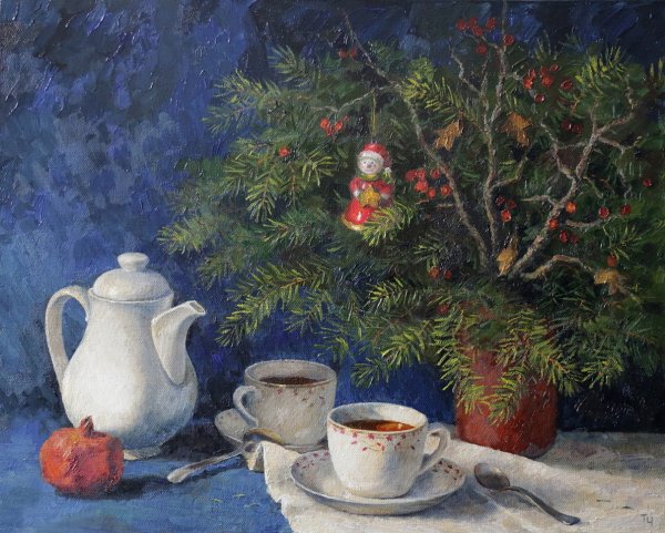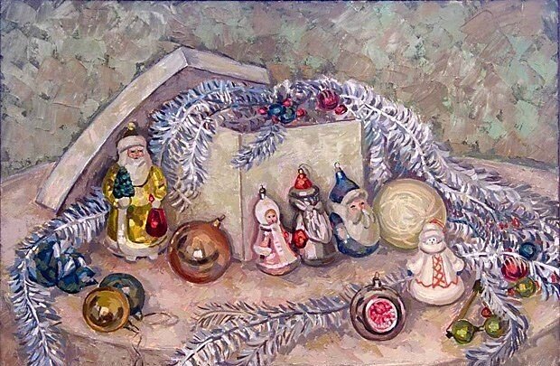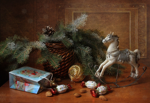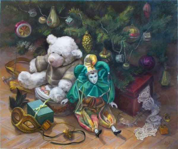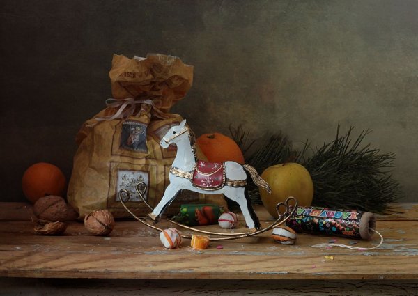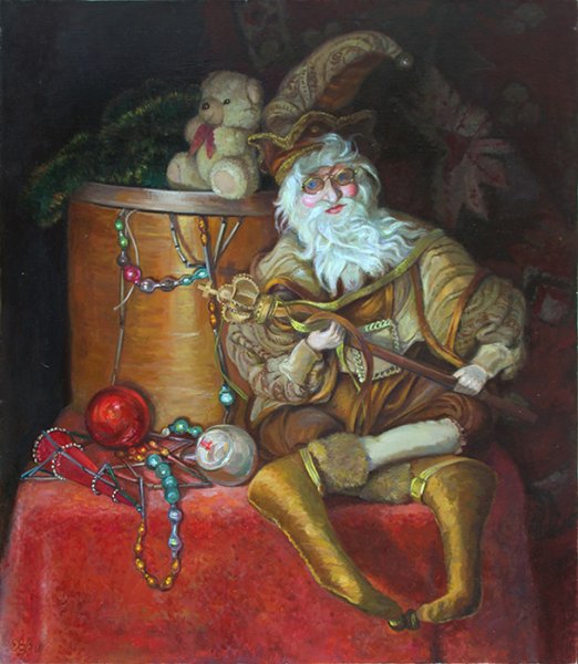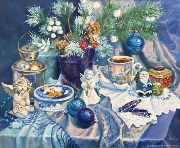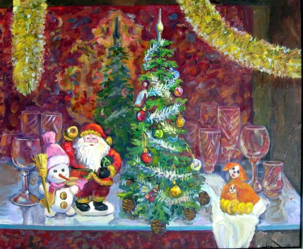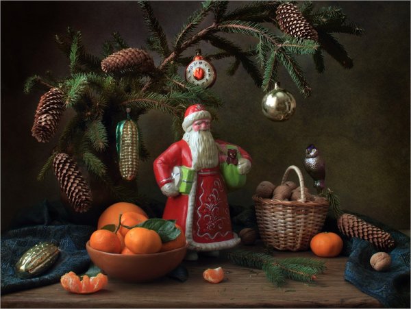 Натюрморт с Дедом Морозом - это удивительное произведение искусства, которое переносит нас в волшебный мир зимнего праздника. На этом натюрморте изображена сцена, где Дед Мороз в своем традиционном костюме с белой бородой и красной шапкой стоит рядом с разнообразными новогодними украшениями, подарками и символами зимы. Цветовая палитра яркая и насыщенная, что создает атмосферу радости и праздничного настроения. Композиция выглядит гармонично и привлекательно, приковывая взгляд зрителя своей красотой и детализацией. Натюрморт с Дедом Морозом - это идеальное произведение искусства для тех, кто хочет проникнуться новогодней атмосферой и ощутить чудеса зимнего времени.