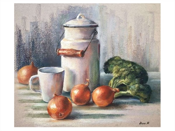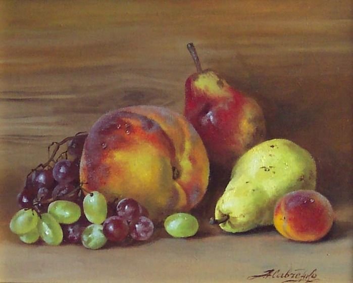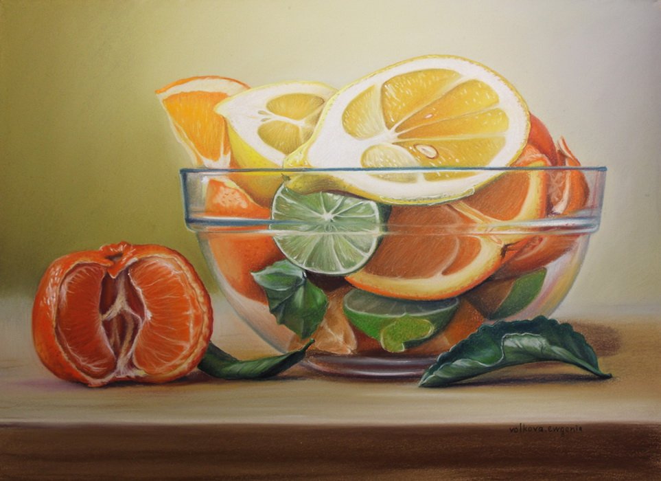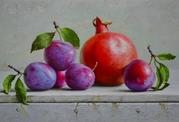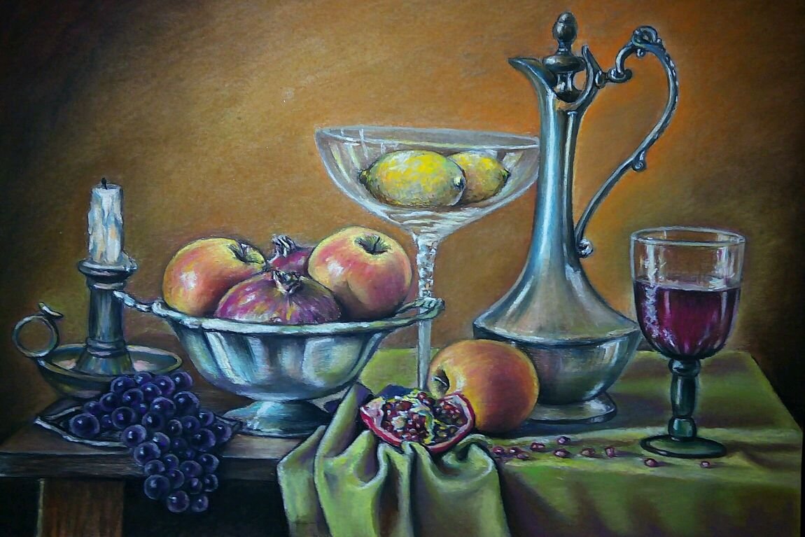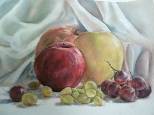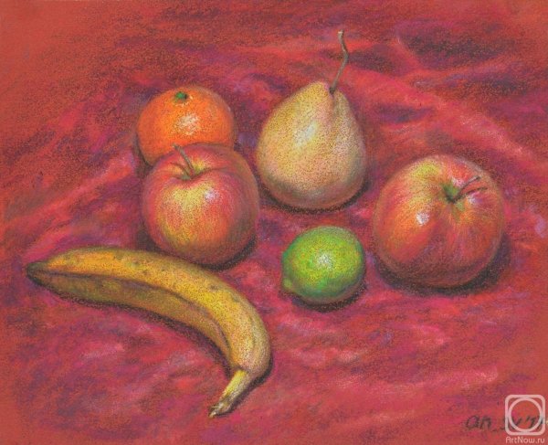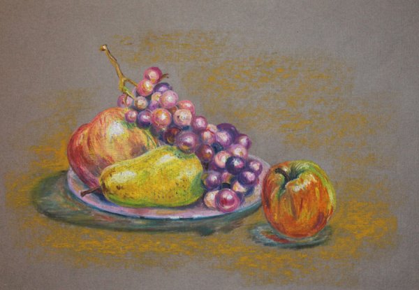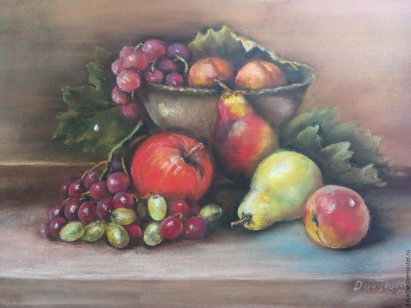 Натюрморт с фруктами пастелью - это произведение искусства, созданное с использованием пастельных красок. На этой живописной композиции изображены различные свежие фрукты, расположенные на заднем плане или на столе. Каждый фрукт прекрасно передан с помощью мягких и богатых оттенков, которые придают работе нежность и реалистичность. Комбинация ярких цветов и тонких штрихов создает ощущение свежести и аппетитности, заставляя зрителя почувствовать запах и вкус этих сочных фруктов. Натюрморт с фруктами пастелью является прекрасным дополнением для интерьера, принося радость и жизнь в помещение.