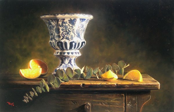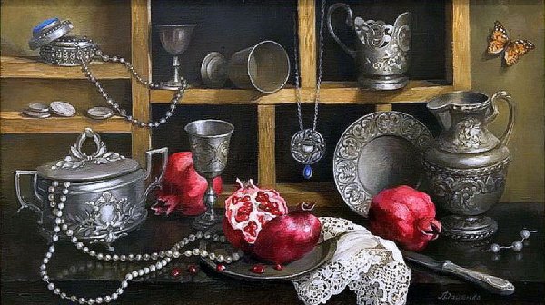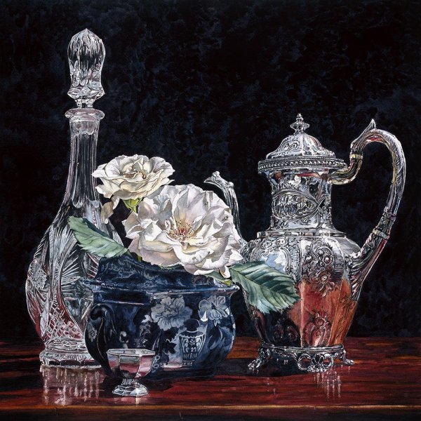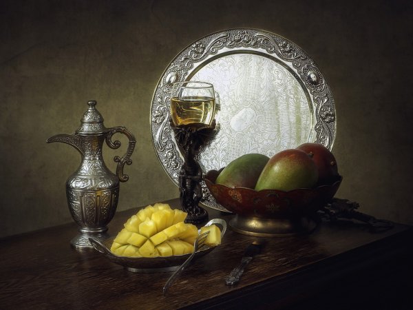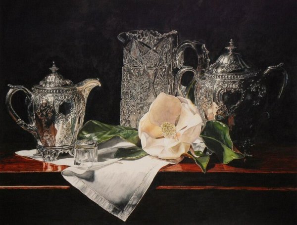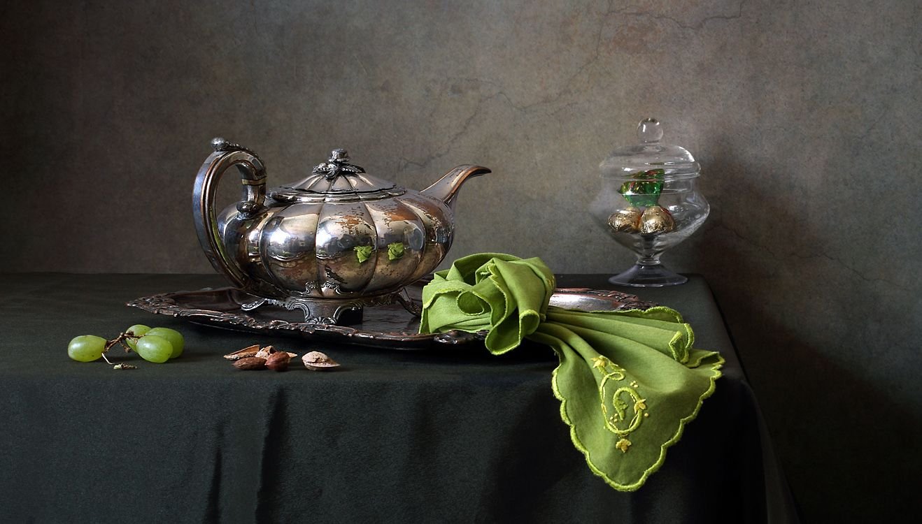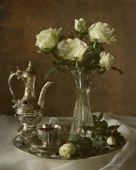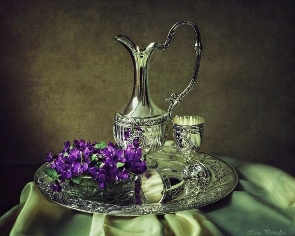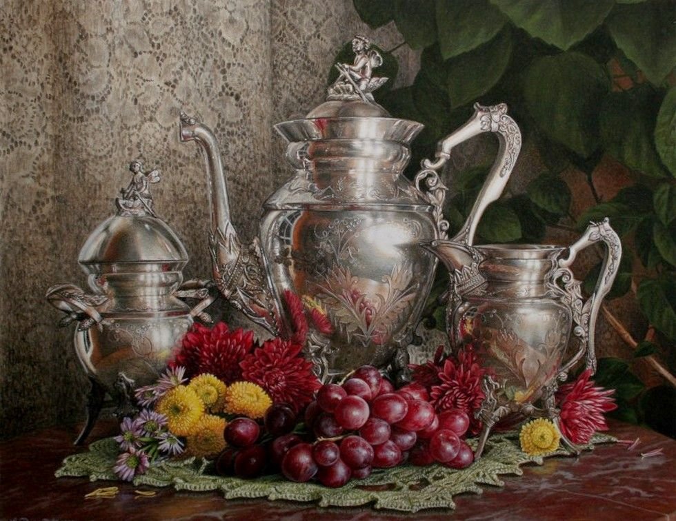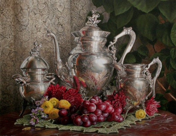 Натюрморт с серебряной вазой - это произведение искусства, которое запечатлевает красоту и элегантность. Серебряная ваза становится главным акцентом этого натюрморта, своего рода символом изысканности и роскоши. Она отражает свет, создавая игру теней и бликов, придавая общей композиции дополнительную глубину и объем. Ваза может быть украшена различными узорами или орнаментами, добавляя еще больше изящества и утонченности. Вокруг вазы можно расположить разнообразные предметы, такие как цветы, фрукты или другие предметы интерьера, чтобы создать концептуальный образ или передать определенное настроение. Натюрморт с серебряной вазой является не только прекрасным произведением искусства, но и способом выразить свою индивидуальность и стиль через художественное творчество.