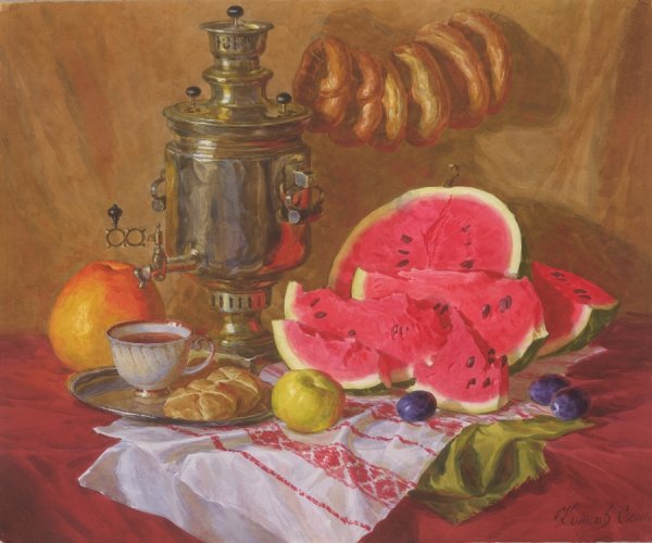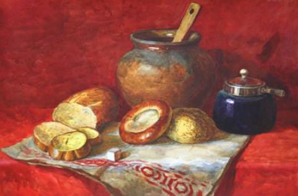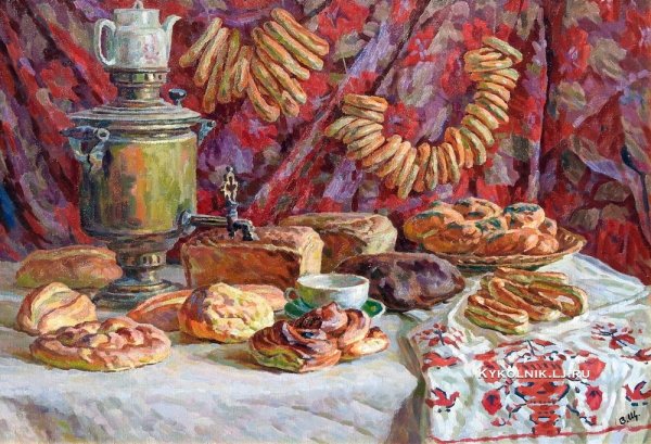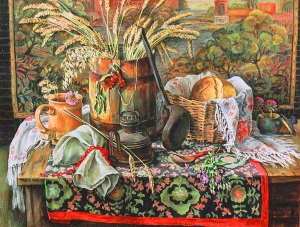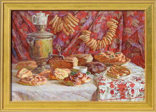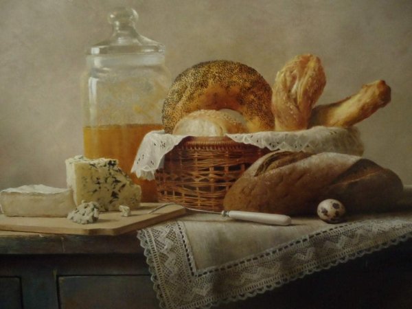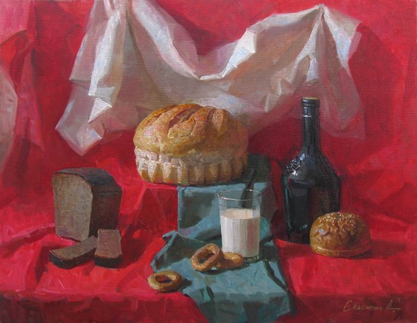 Андрияка - талантливый художник, известный своими прекрасными натюрмортами. Один из его наиболее выразительных и запоминающихся работ - натюрморт с хлебом. В этой картины Андрияка переносит зрителя в атмосферу уютной кухни, где на столе установлены свежие хлебные изделия. Игра света и тени, мягкие оттенки палитры создают ощущение реальности и придают работе особую гармонию. Натюрморт с хлебом Андрияка не только поражает своей красотой, но и символизирует благополучие, обилие и домашний уют. Эта картина станет прекрасным украшением любого интерьера и наполнит его теплотой и гармонией.