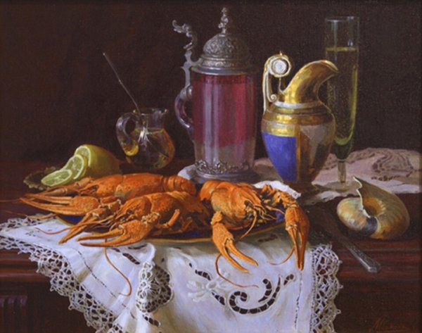 Андрияка натюрморт с пивом - это уникальное произведение искусства, которое воплощает в себе сочетание эстетики и пивной культуры. Картина поражает своей реалистичностью и детализацией, передавая все оттенки и текстуры предметов на холсте. На фоне темного стола видны разнообразные пивные бутылки и бокалы, расставленные аккуратно и притягательно приглашающие зрителя насладиться атмосферой пивного отдыха. Благодаря мастерскому использованию светотени и цветовой палитры, каждый элемент композиции приобретает объем и оживает перед глазами зрителя. Андрияка натюрморт с пивом является прекрасным выбором для любителей искусства и пива, создавая уютную и праздничную атмосферу в интерьере.