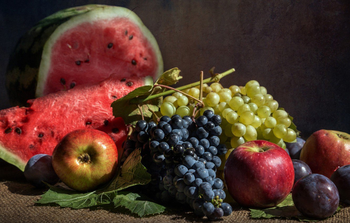 На холсте развернулся яркий и сочный натюрморт, в котором главными героями стали арбуз и разнообразные фрукты. Цельное сочное ягодное мякоть арбуза прекрасно контрастирует с яркими оттенками спелых яблок, сладких персиков и ароматных киви. Великолепное сочетание цветов и форм создает ощущение полного праздника вкуса и изобилия. Различные текстуры и фактуры фруктов, начиная от гладкой поверхности арбузной корки до нежных волнистых листочков киви, придают работе динамичность и интерес. Этот натюрморт является визуальным праздником для глаз и вызывает желание насладиться его красотой и вкусом каждого представленного фрукта.