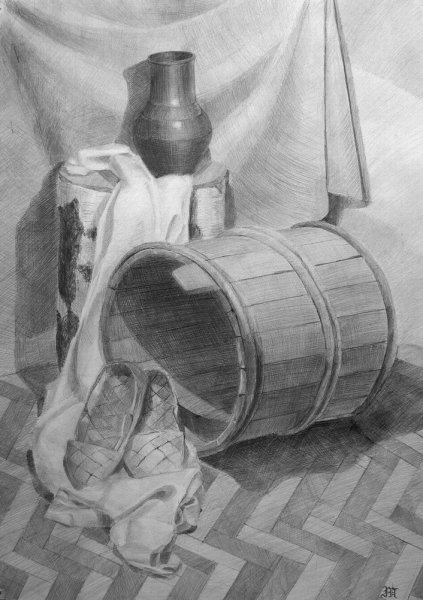 Натюрморт из крупных предметов быта - это композиция, созданная из различных предметов, таких как столовая посуда, кухонные принадлежности или мебель, чтобы передать атмосферу домашнего уюта и повседневности. В таком натюрморте обычно используются большие объекты, которые занимают центральное место в композиции, исследуя их формы, текстуры и отношения друг с другом. Этот тип натюрморта может быть интересным способом выразить силу и значимость обычных предметов, позволяя зрителю увидеть красоту и эстетику в повседневной жизни. От выбора предметов до расстановки и освещения, натюрморт из крупных предметов быта предлагает бесконечные возможности для творчества и самовыражения.