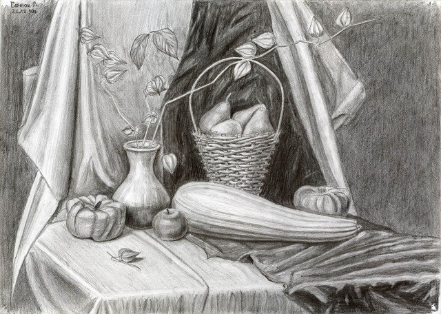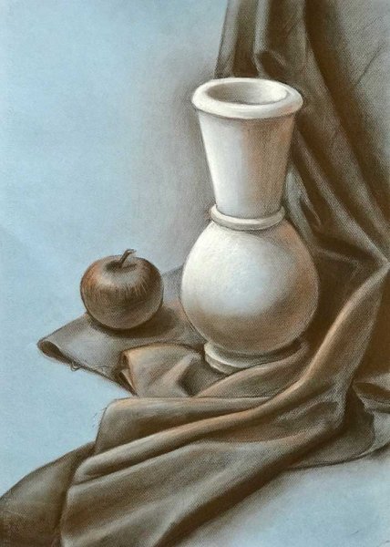 Графический натюрморт с вазой и декоративной драпировкой, украшенный свежими сочными фруктами - это прекрасное произведение искусства, которое захватывает взгляд и приносит радость. Визуальная композиция этого натюрморта создает атмосферу изящества и гармонии, а яркие цвета фруктов придают ему жизнерадостность и энергию. Каждая деталь внимательно продумана, а тщательно выполненные штрихи придают работе реалистичность и объемность. Этот графический натюрморт станет прекрасным украшением для интерьера любого помещения и добавит нотку изысканности в вашу обстановку.