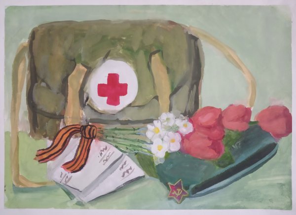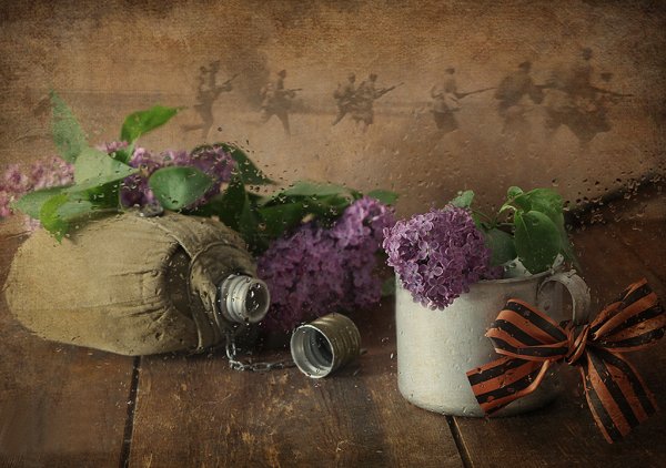 Великолепный натюрморт, посвященный 9 мая - Дню Победы, ярко и символично передает важность этого знаменательного события. Композиция включает в себя разноцветные цветы, символизирующие жизненную силу и обновление, и покрытие из красной бумаги, которое напоминает о пролитой крови и страданиях во время Второй мировой войны. Натюрморт также содержит элементы патриотической символики, такие как флаги, гербы и медали, что подчеркивает гордость и почтение к тем, которые отстояли мир и свободу. Этот натюрморт служит не только украшением интерьера, но и напоминанием о подвигах наших предков, которых мы должны помнить и чтить.
