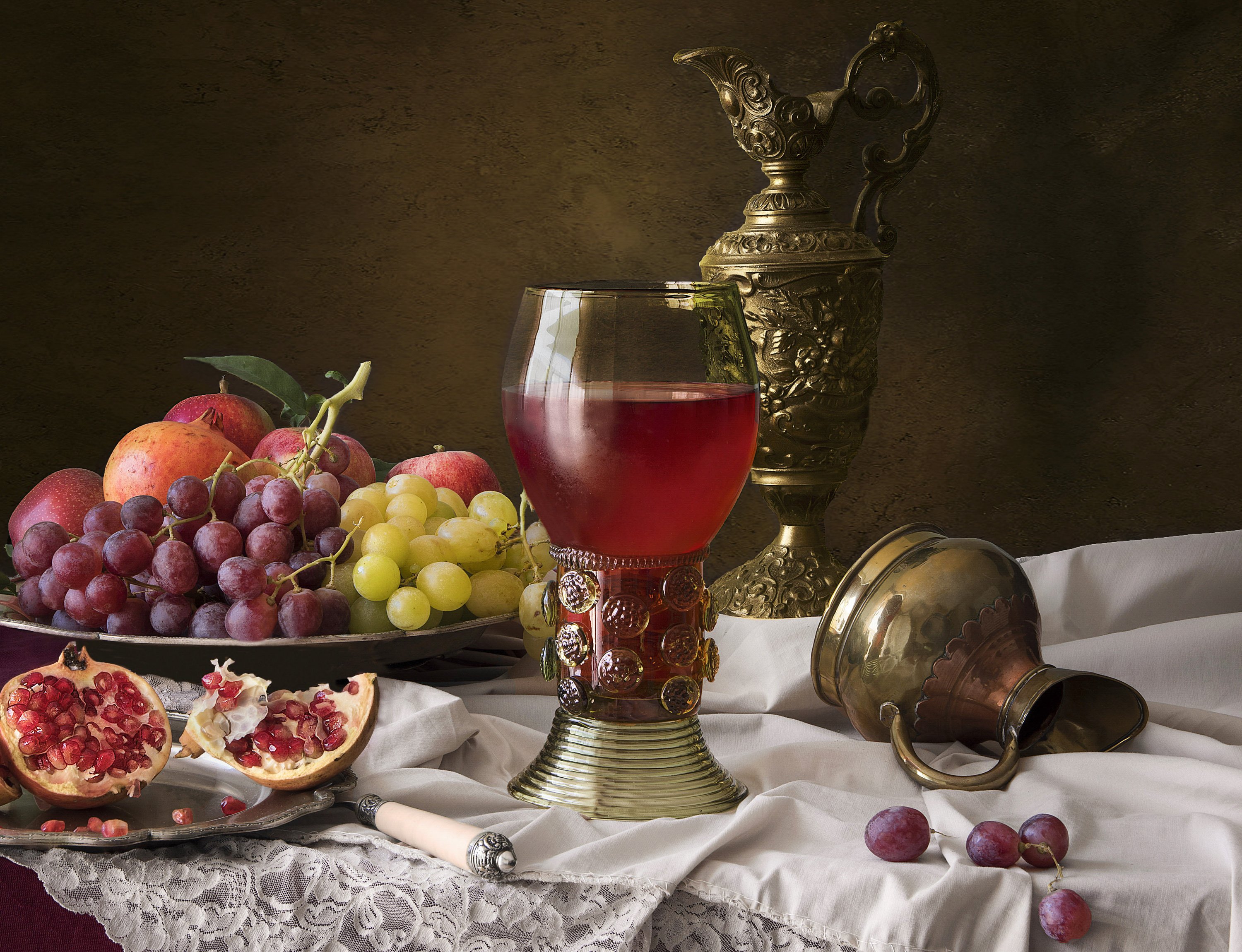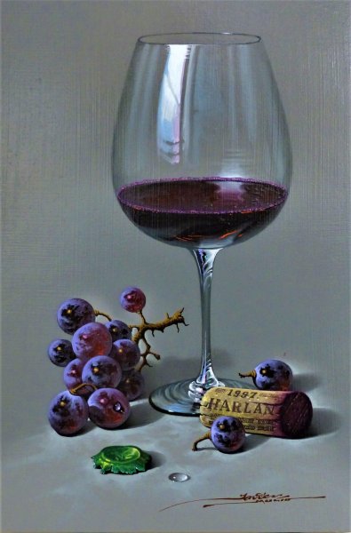 Описание: Великолепный натюрморт, запечатлевший изысканный виноград и изящий бокал с ароматным вином, переносит нас в мир изысканности и благородства. Каждая ягода винограда кажется словно пронизана солнцем, сверкающая под его лучами, раскрывая свою сочность и сладость. Букет винограда разнообразен, отражая всю палитру его оттенков - от зеленого и желтого до пурпурного и черного. На фоне расположен изящный бокал, наполненный драгоценным рубиновым вином, которое идеально подчеркивает аромат и вкус винограда. Это произведение искусства воплощает элегантность и утонченность, приглашая нас насладиться моментом вкуса и красоты.